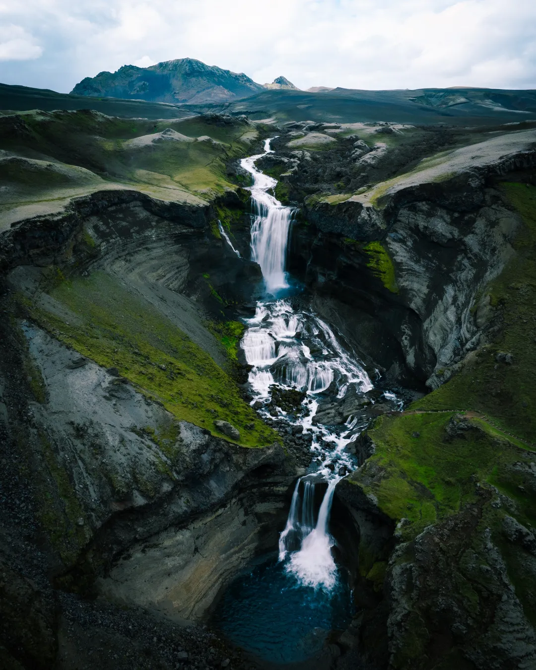 Impressive multi-drop waterfall in Iceland