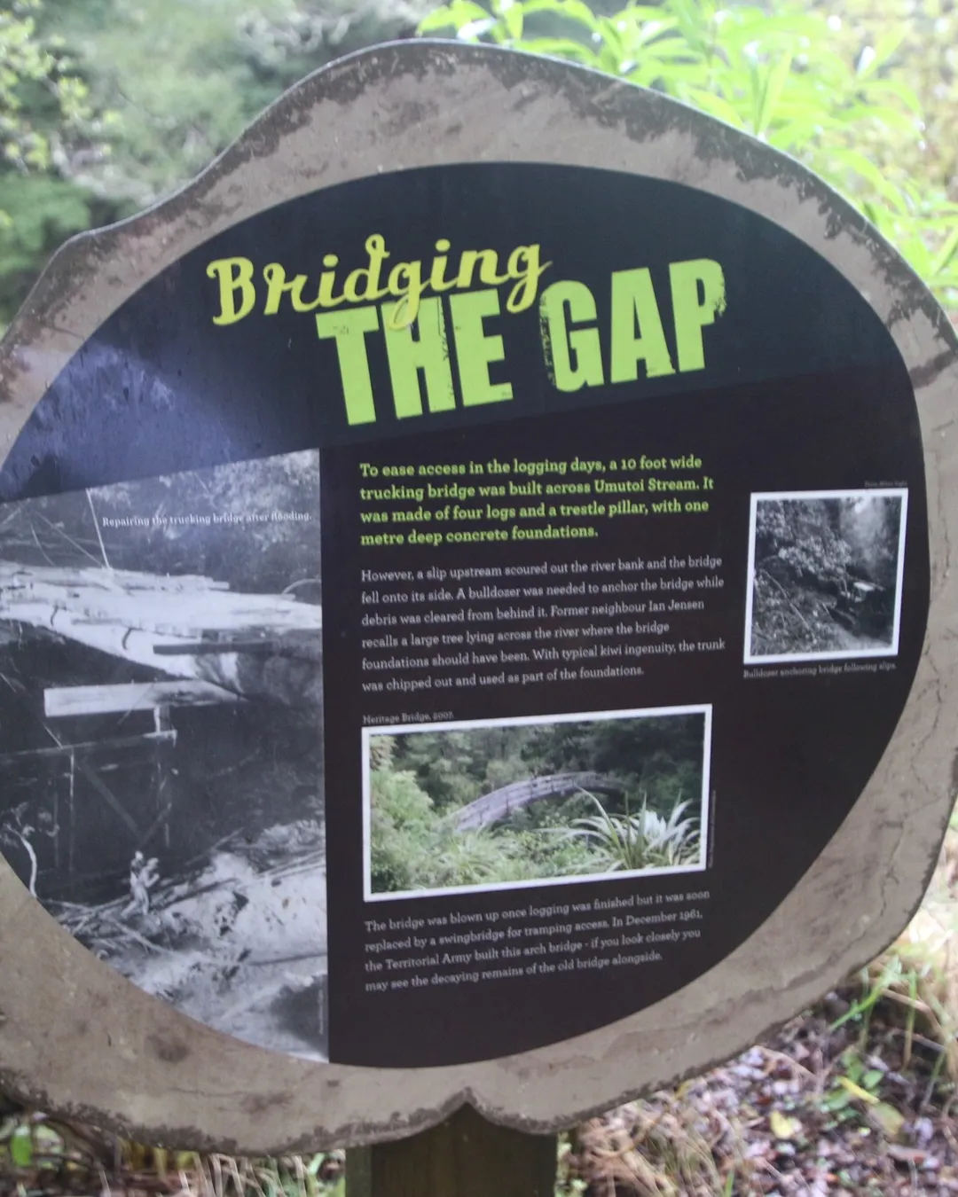 The walk is very easy through lovely bush, with a beautiful bridge. The track is well graded, and it's easy enough that most toddlers should be able to walk at least decent chunks of the way. If your toddler is unable to walk it, at least it's not far or a hard walk to carry them. The track is almost 4WD distance most of the way which makes it very easy to hold kids hands, and no shrubbery to bush-bash through. There is a bit of up and down to walk, but again it is a gentle track and the inclines and declines are very gradual.