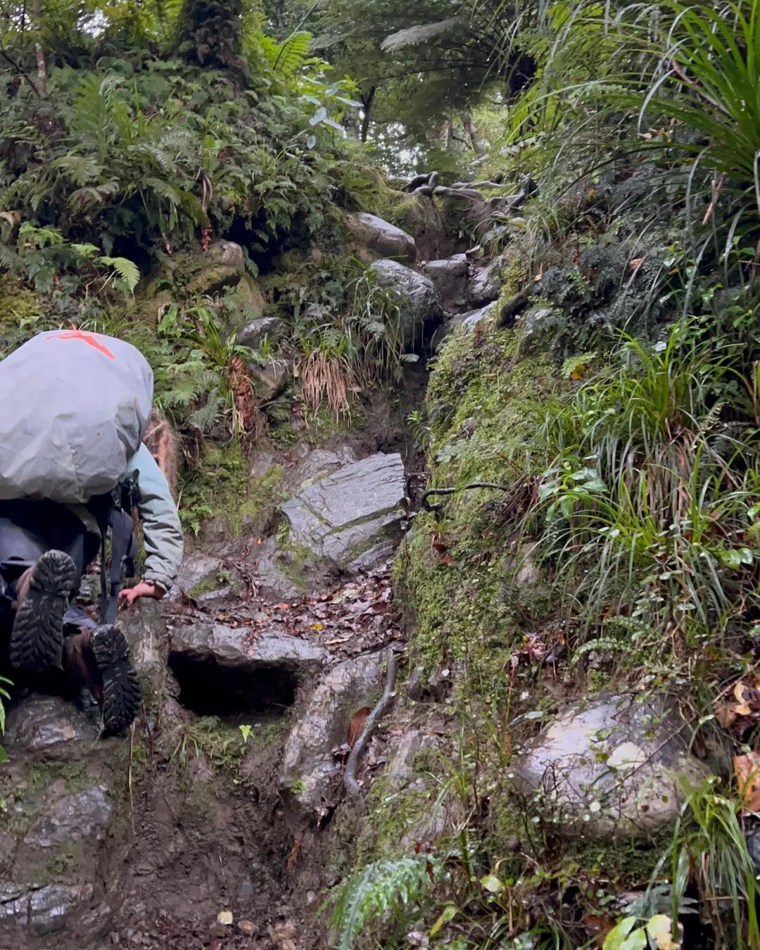 There are numerous slips and gorge sections to climb up and over. You never knew what the track is going to do next. If there are high river levels there is an extra gorge section to climb up and over too, as you have to bypass the section along the river if the flow is too high.
