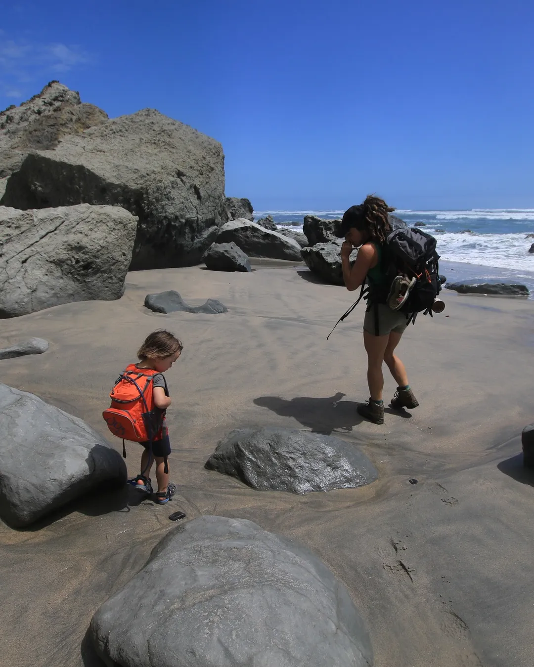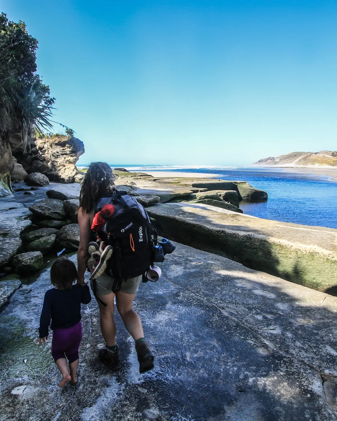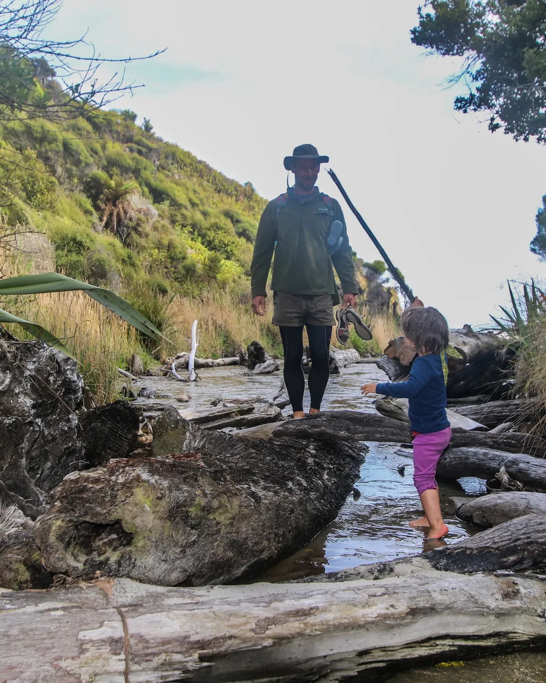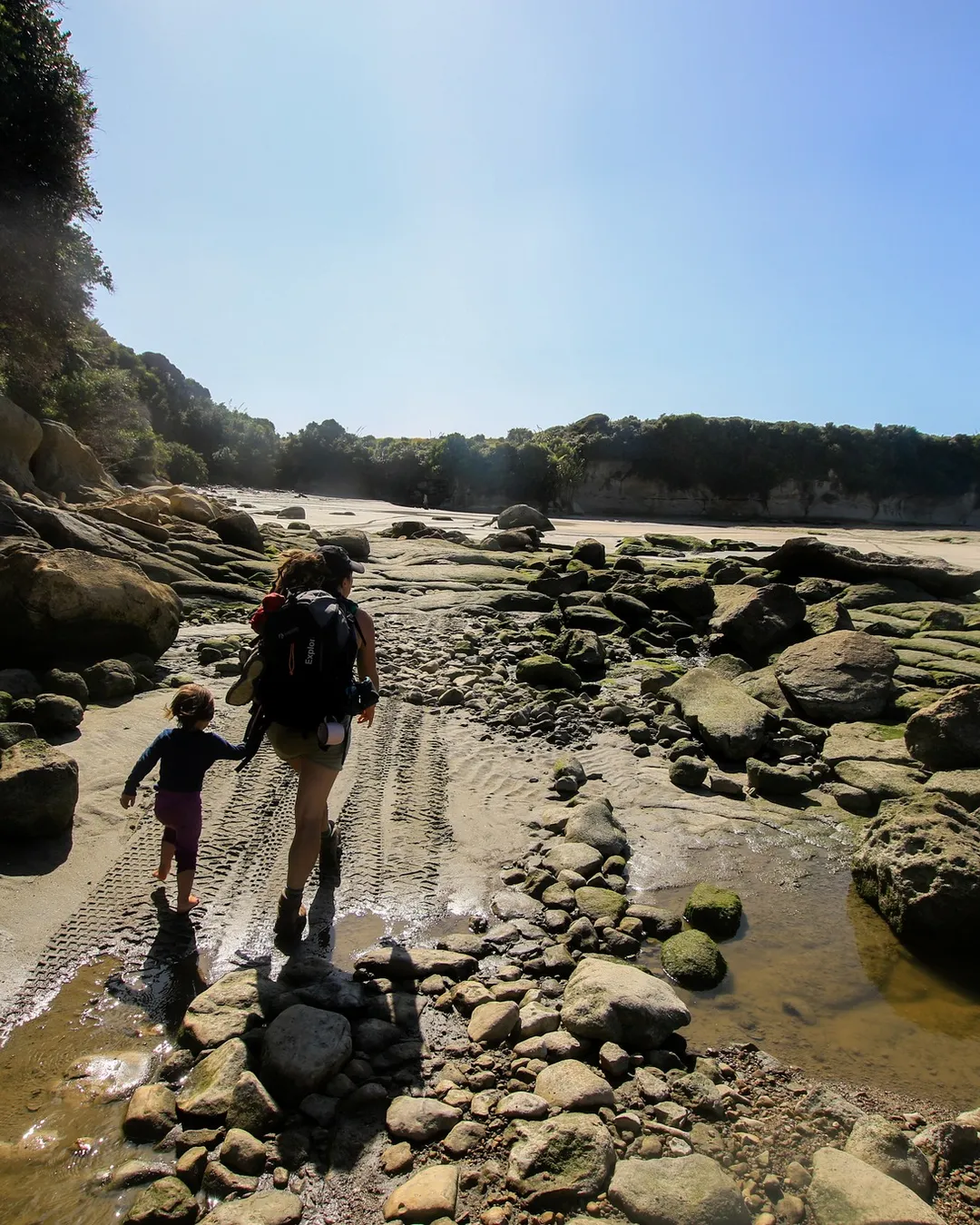 Big River is important to cross 2 hours either side of low tide. If you carried a packraft, you could cross this on a packraft too. Or without kids you could walk over with packs above heads. But with children it is definitely best to cross 2 hours either side of low tide.