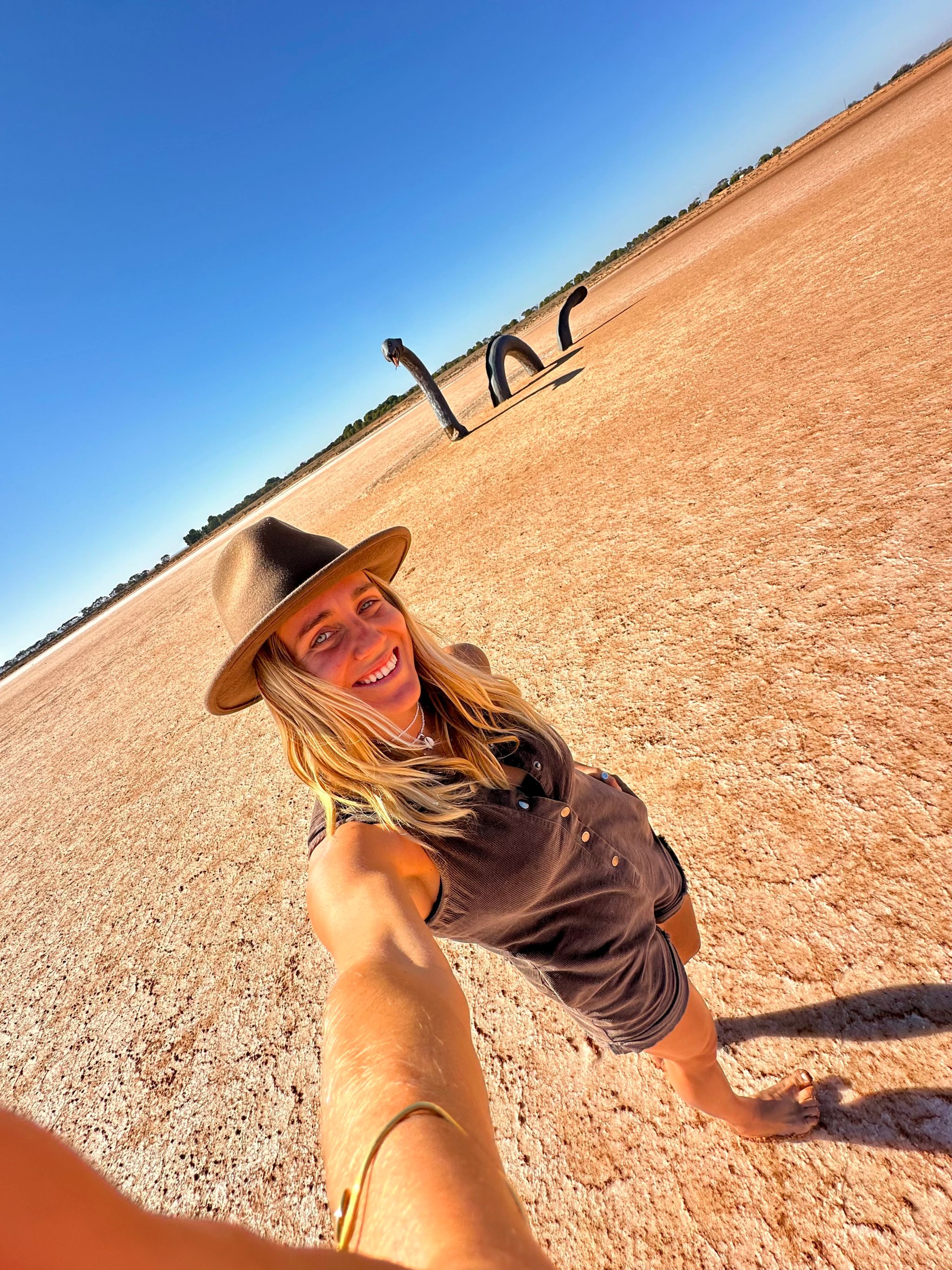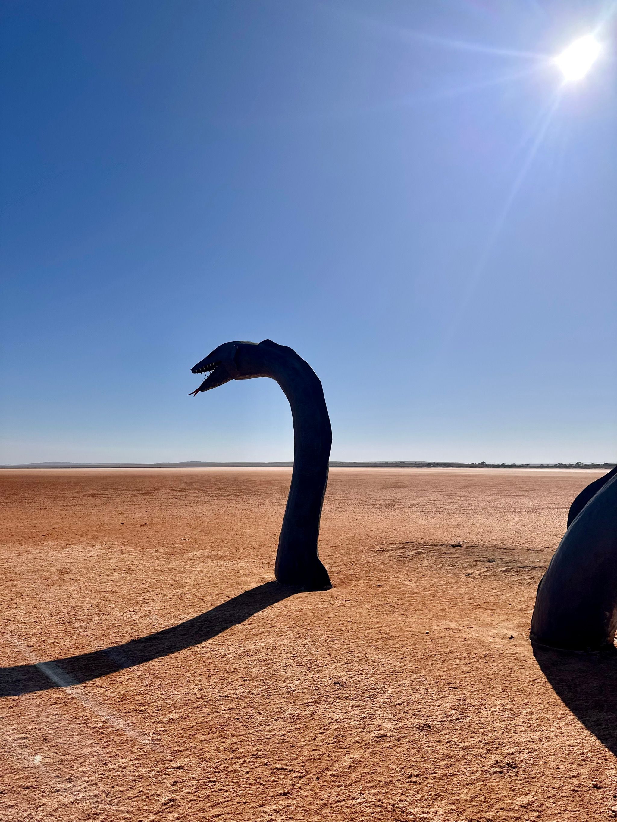 Loch-Eel is one of those random, unexpected finds that makes road-tripping so fun. You’re driving through South Australia, minding your own business, and then BAM—there’s a massive Loch Ness monster just chilling in the middle of a salt lake. I had no idea it existed, just caught it out of the corner of my eye, and I swear my brain short-circuited for a second. Genuinely freaked out for a second there haha