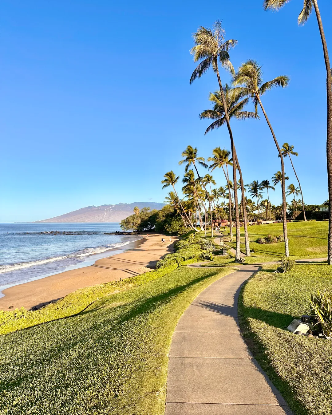 Chair and umbrella setup is offered at Wailea Beach. The sand is soft, the water is usually calm enough for swimming, and there’s decent snorkeling.