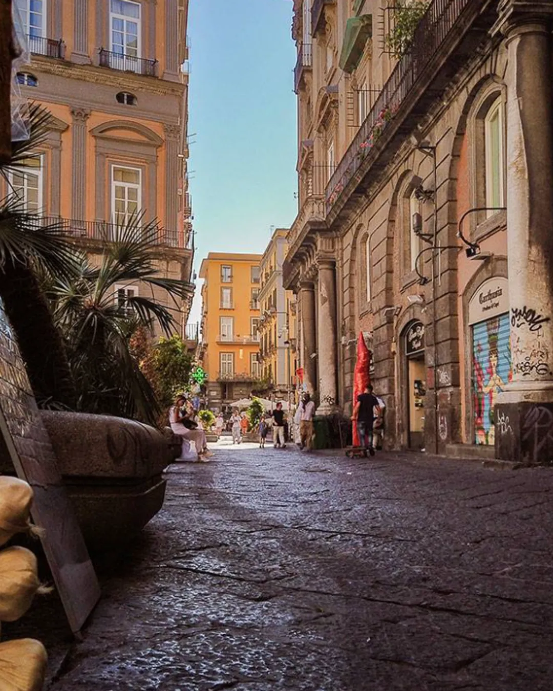 If you wanna have a good start to your morning and you're in Naples, you can't help but treat yourself to a nice espresso, strictly accompanied by a glass of water. After taking the right charge, go to Spaccanapoli. But be careful, don't be fooled: don't look for "Spaccanapoli" on the directions, because it would lead you to one of the many restaurants with that name. The official names to look for are via Benedetto Croce and via Forcella. Spaccanapoli is so called because it clearly divides, with its perfect linearity, the ancient city between the north and the south. Here you can stroll among shops, churches and palaces. If you have the time and desire to discover the secrets of this part of the city, I recommend a tour of the historic centre: it also includes admission to admire the Veiled Christ in the San Severo chapel.