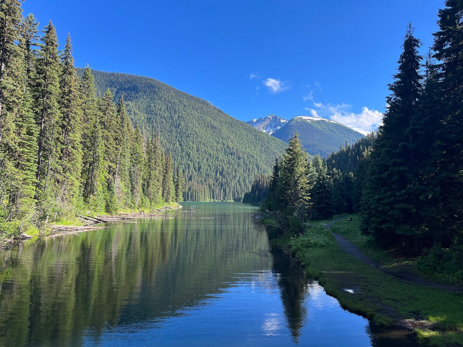Flat 9 km Lightning Lake Loop trail around the lake