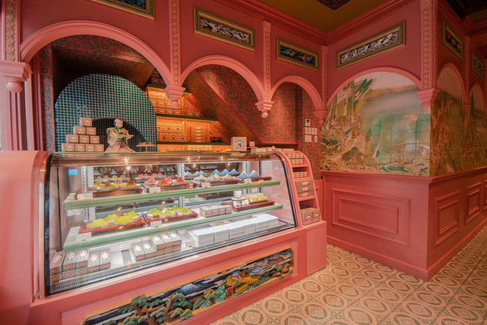 Magical pink mountain-themed tea salon