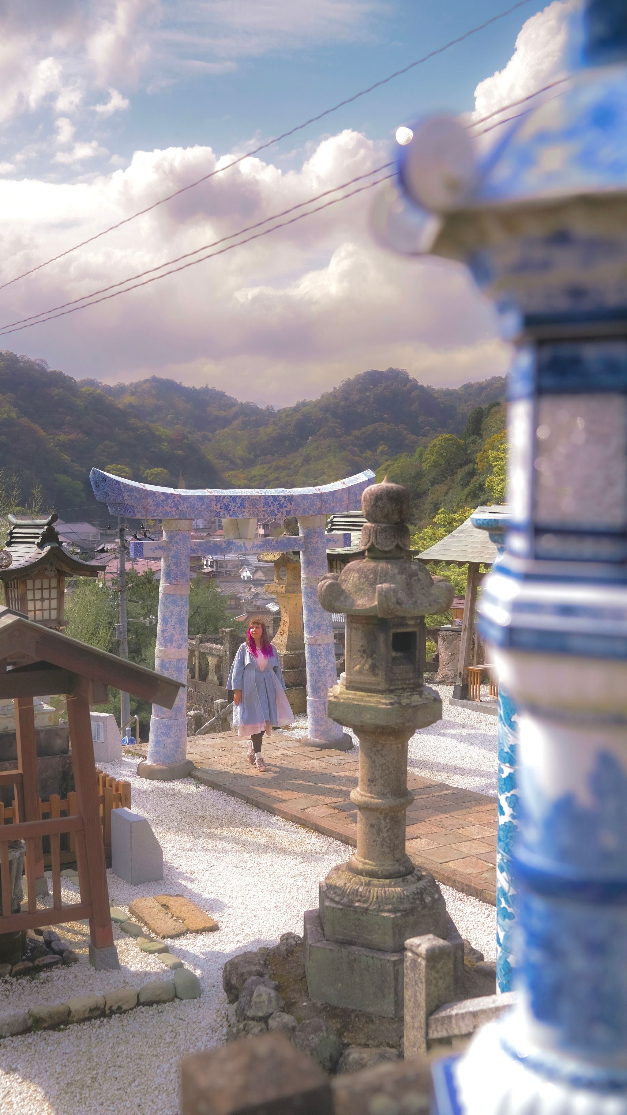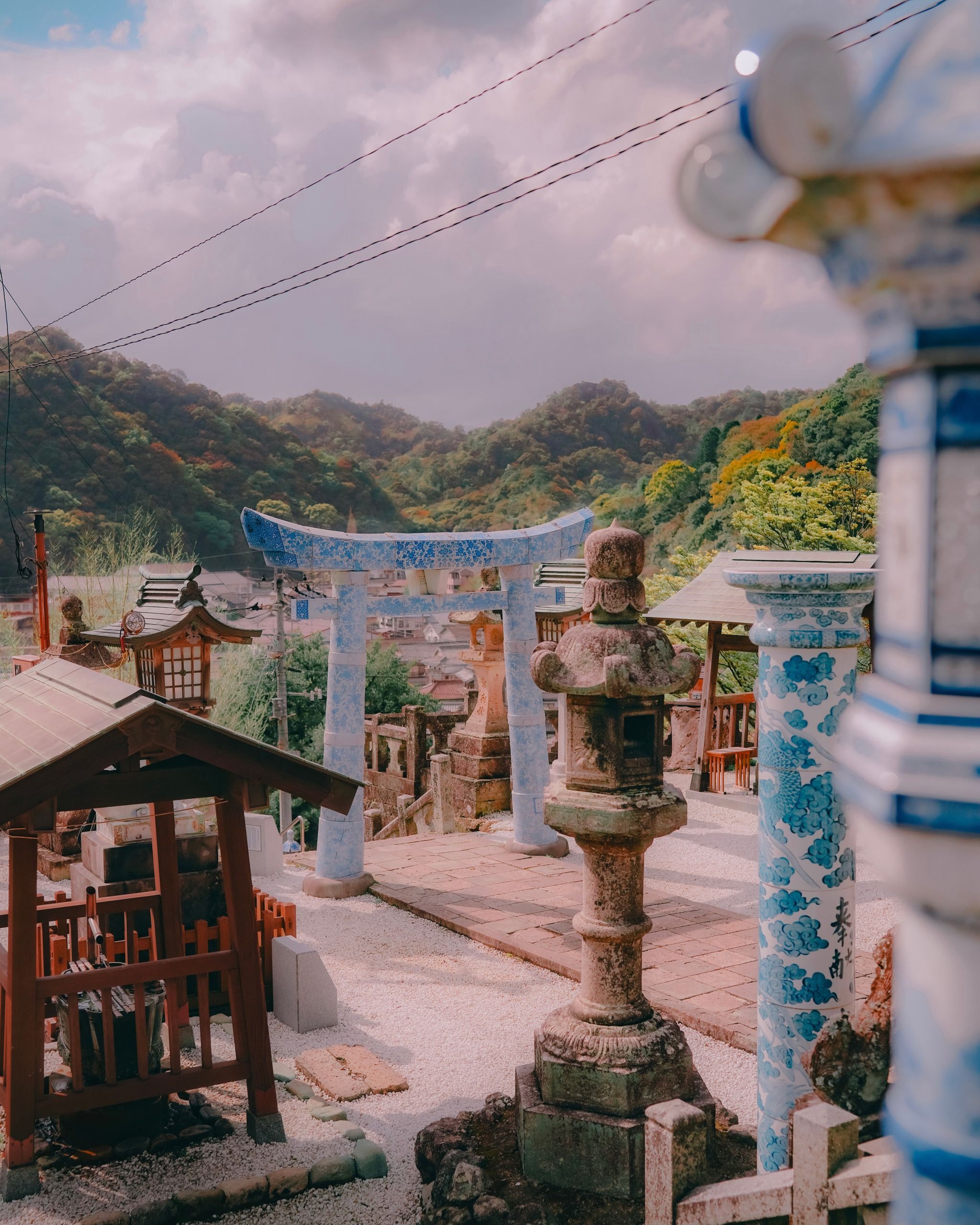 Shinto shrine with porcelain torii