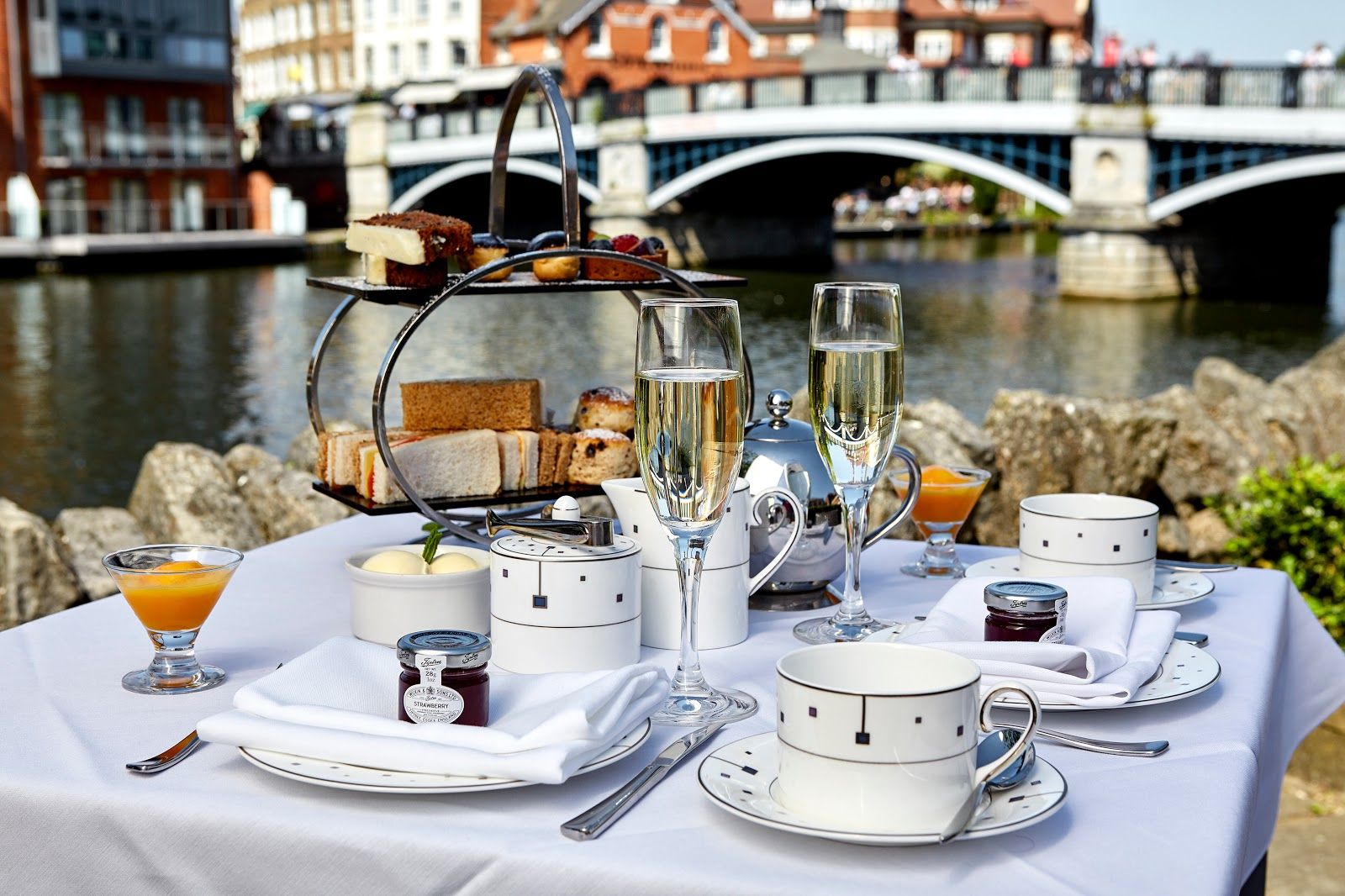 A riverside hotel with a spa