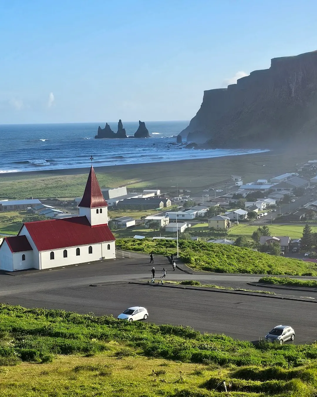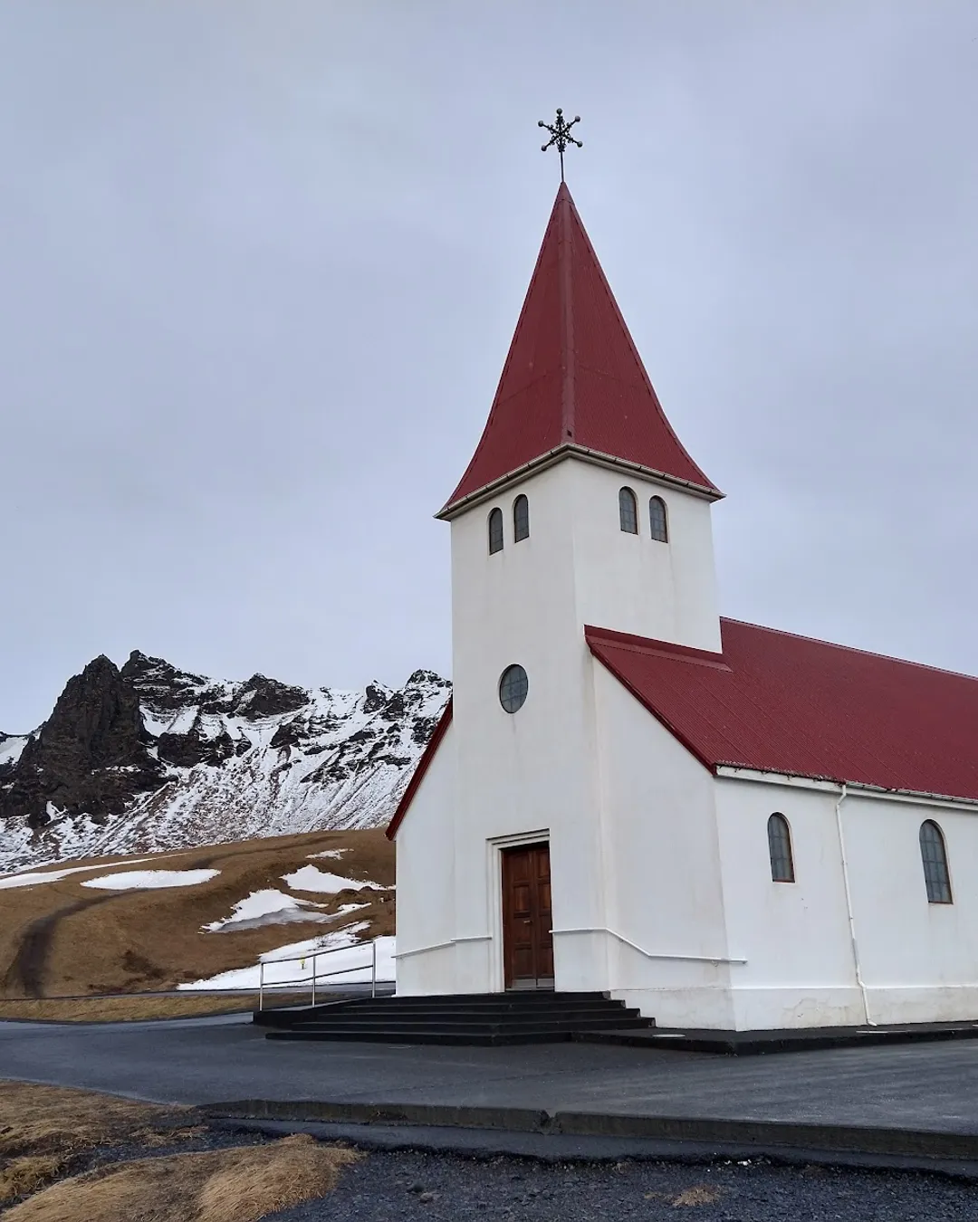 Vík í Mýrdal Church, perched on a hill overlooking the charming village of Vík, is a picturesque little spot that catches the eye of anyone passing through. With its striking white exterior and bright red roof, it stands out against the dramatic backdrop of Iceland's rugged landscape. The church was built in the early 20th century and has become a beloved landmark for both locals and visitors alike. Inside, it features simple yet beautiful decor, reflecting the serene atmosphere of the area. People often stop by to take in the stunning views of the surrounding mountains and black sand beaches, making it a perfect place for a quick photo op or a moment of reflection. The church also holds regular services, adding to its community vibe. Overall, it's a lovely blend of history, culture, and natural beauty that captures the essence of Icelandic charm.