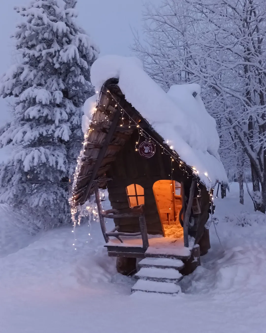 Start at the Visitor Centre: here you can grab a coffee or taste their on-site gelato made from local berries. From there, explore the elf trails through the forest, discover small elf houses, and stop by Karhutuoli, a perfect photo spot. For a unique stay, the Aurora Pyramids let you watch the northern lights from your own room.