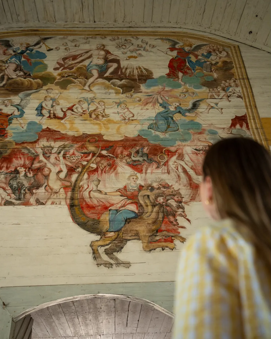 Historic wooden church with paintings