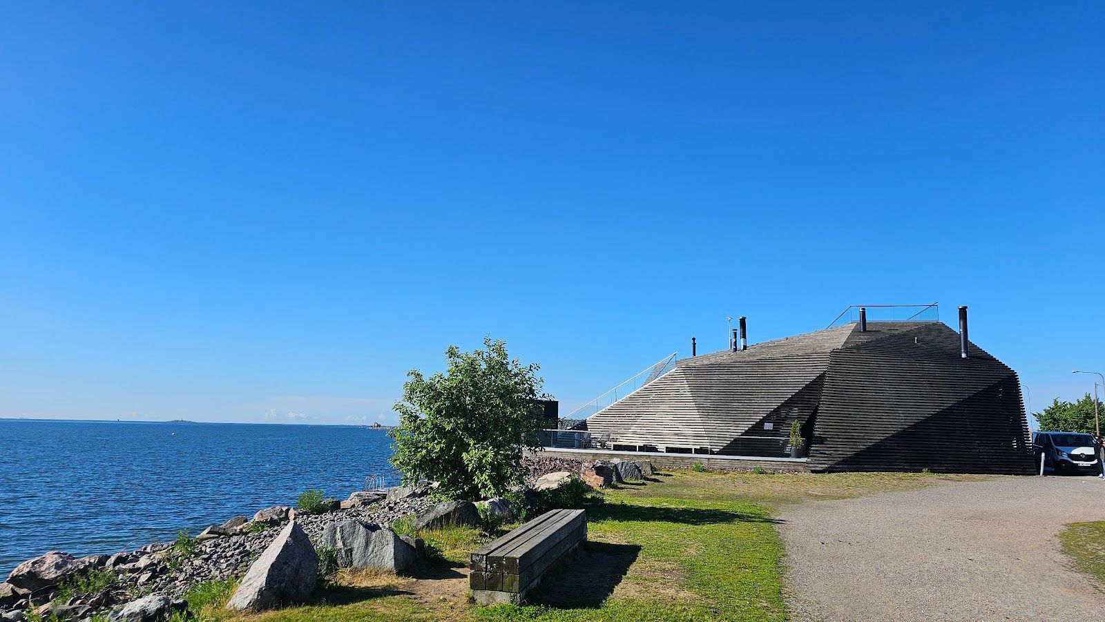 Löyly is in Hernesaari, about a 10-minute drive or 20-minute bike ride from the city center. You can also reach it by tram or bus, and there are plenty of bike paths along the coast.