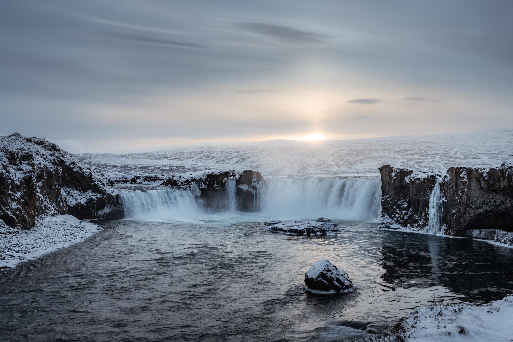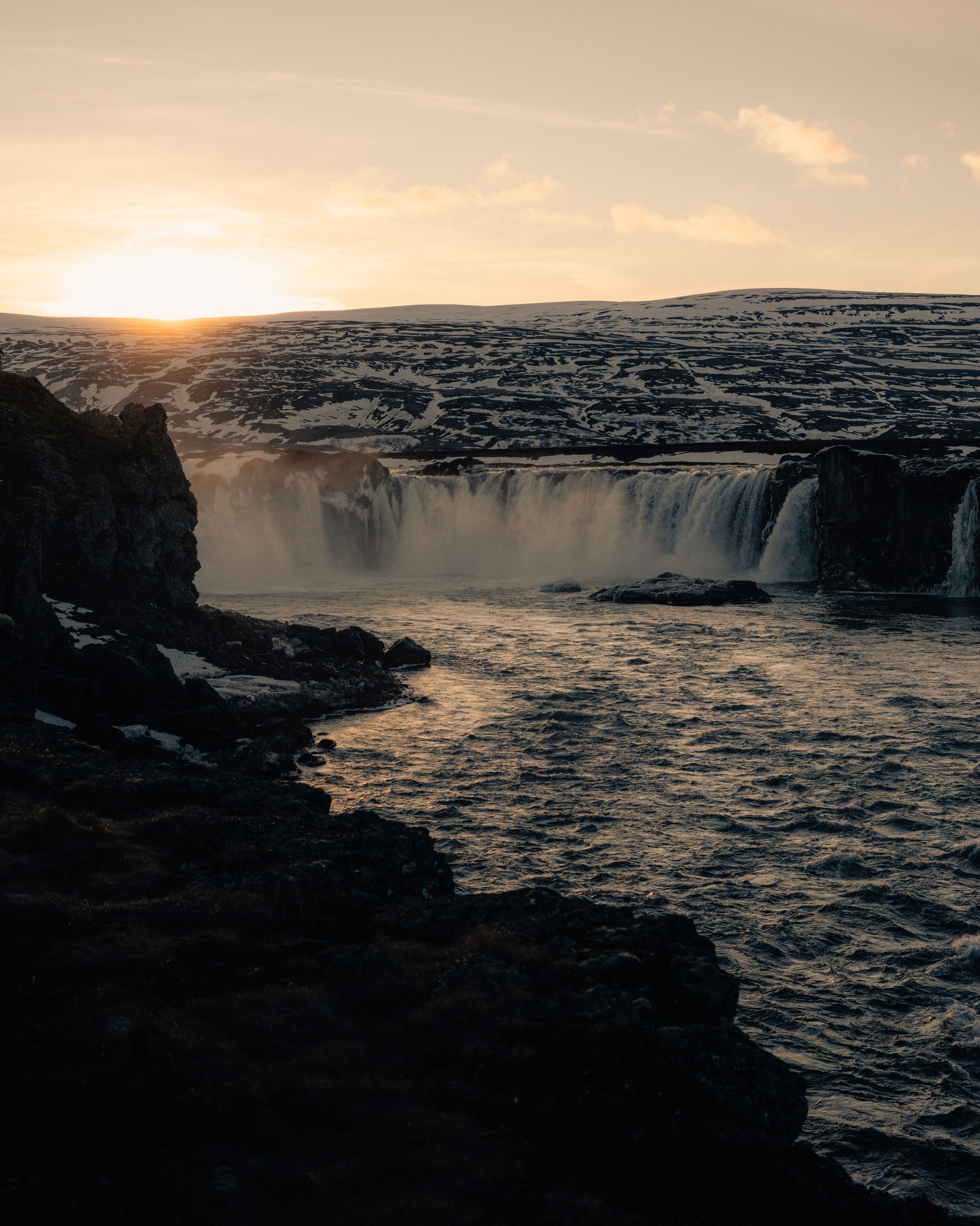 Located directly on Route 1, between Akureyri and Mývatn, Goðafoss is easily accessible from either direction. There are parking areas on both sides of the river, and a footbridge connects them. The east side offers a view into the horseshoe-shaped curve, while the west side gets you closer to the powerful drop and mist.