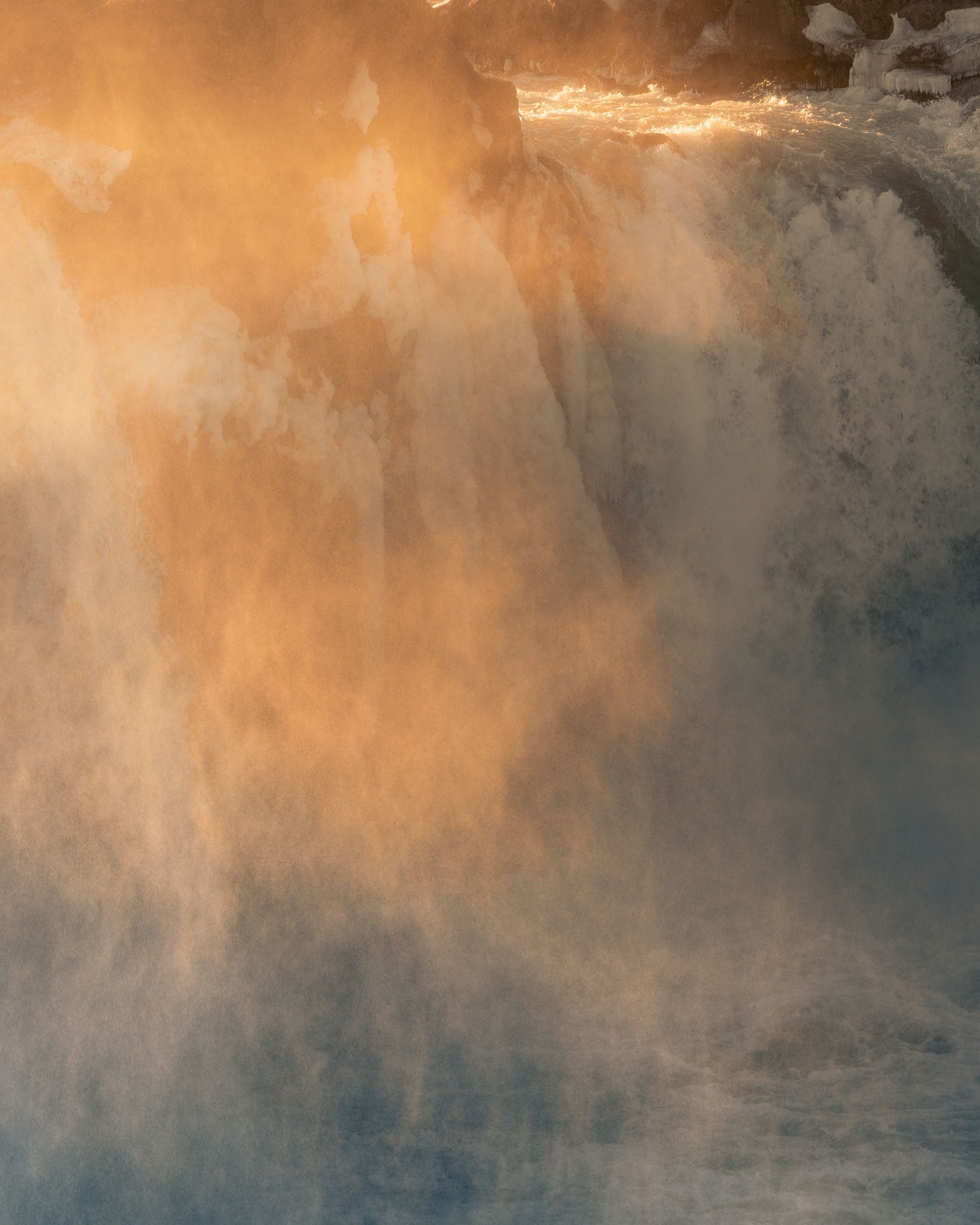 Wide-angle lens for full waterfall views. ND filters for silky long exposures. Drone is permitted and offers excellent top-down and oblique views of the waterfall's curvature, fly carefully over the river.