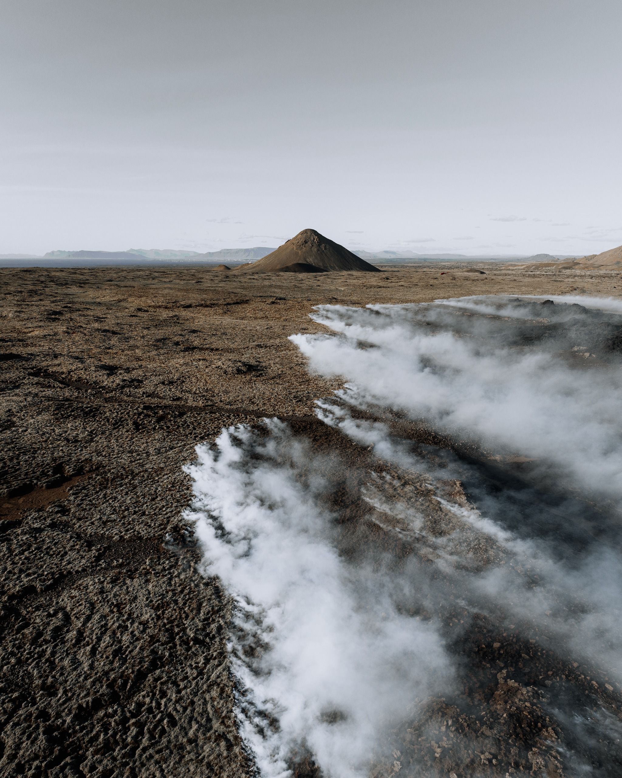 Drone works very well here, showind the symmetry of the mountain and surrounding lava textures