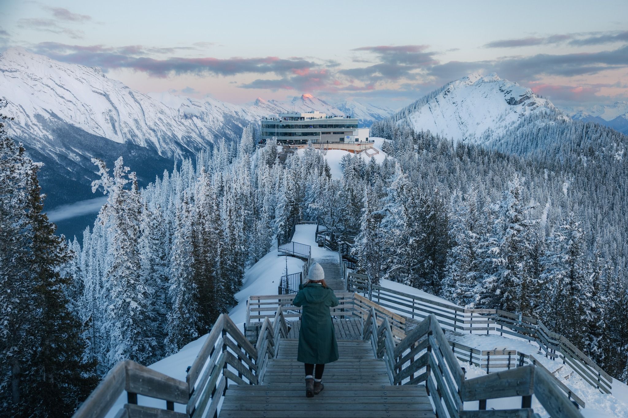 The Banff Gondola is a must do activity if it's your first time in Canadian Rockies. Yes, it's touristy but it provides absolutely amazing 360° views of the town of Banff and surrounding mountains from the top of Sulphur Mountain. It is amazing and runs year round (except for a short annual maintenance break in November), but we visiting in winter might actually be our favourite time!