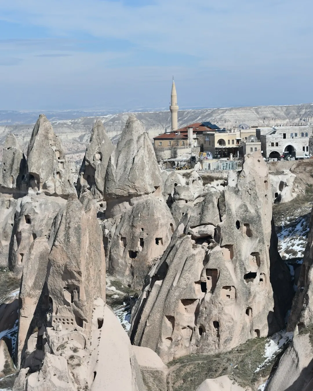 Welcome to Uçhisar, the crown of Cappadocia! We locals know it as the highest point in the region, and you'll understand why when you see the breathtaking panoramic views from our magnificent rock castle. It's a bit of a climb to the top, but absolutely worth it for the unforgettable sight of the fairy chimneys and valleys stretching out below. The village itself is a quieter, more peaceful alternative to some of the busier spots, perfect for wandering through stone-lined streets and soaking in the timeless atmosphere. From here, you can easily wander down into the famous Pigeon Valley for a beautiful hike.