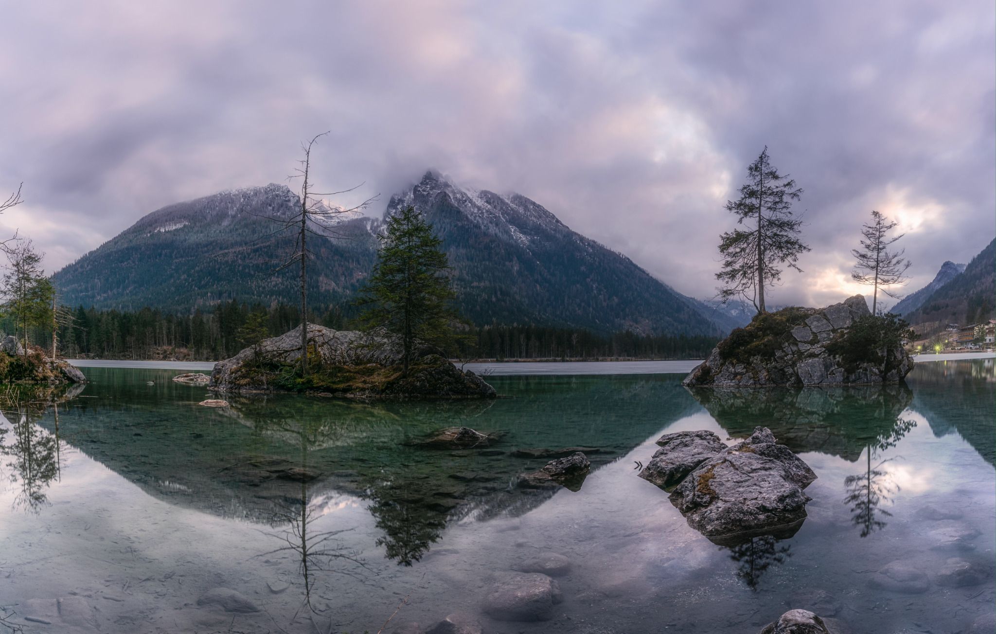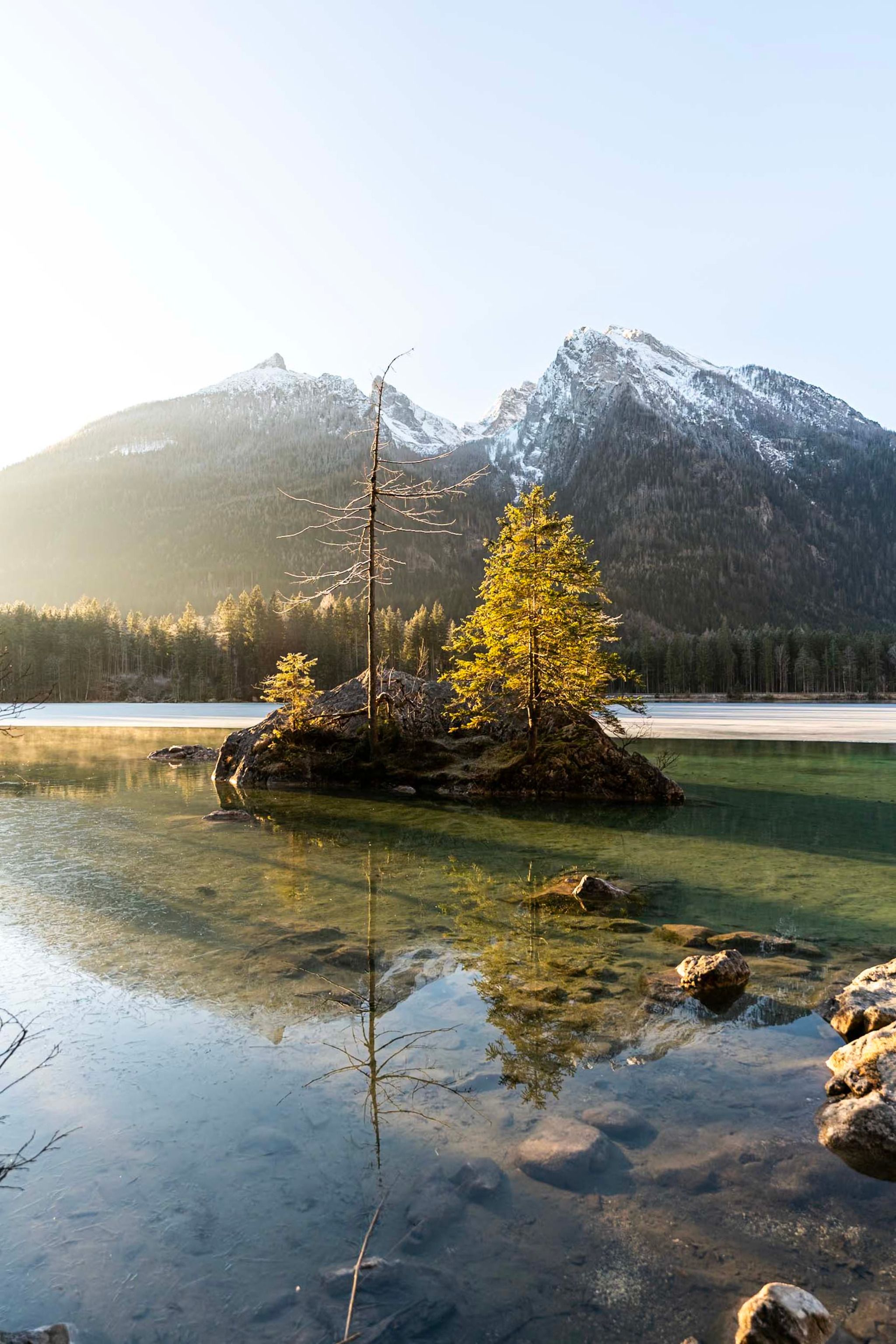 Hintersee is a beautifully situated lake easily accessible by car (parking at Pension Seeklause) or by bus (line 846 from Berchtesgaden main train station). The prime photo spot lies along a wide hiking trail and offers calm waters, so an ND filter is generally not required.