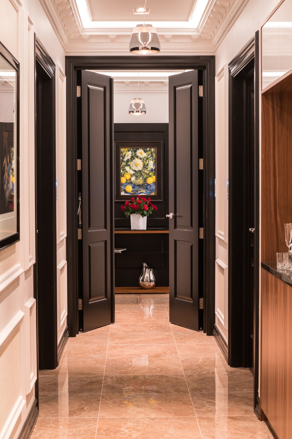 The entire Diamond Suites boutique hotel offers the unique possibility of being rented as a single penthouse suite measuring 3000 square feet. It features a spacious living room, dining area, kitchenette, private balcony with two Jacuzzi’s and up to five en suite bedrooms each one with its own character and theme such as VERSACE marble tiles, whirlpool bathtubs, double sinks, and faucets designed by Philippe Starck.