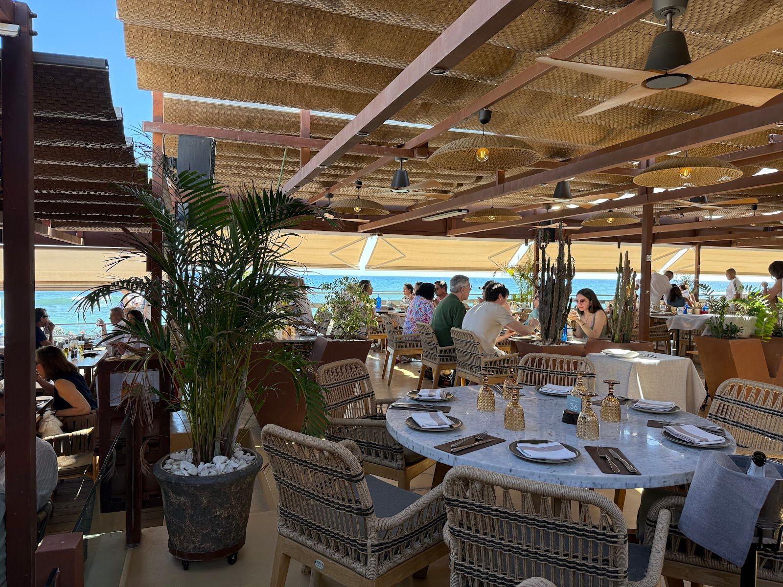 Cena frente a la playa junto al faro