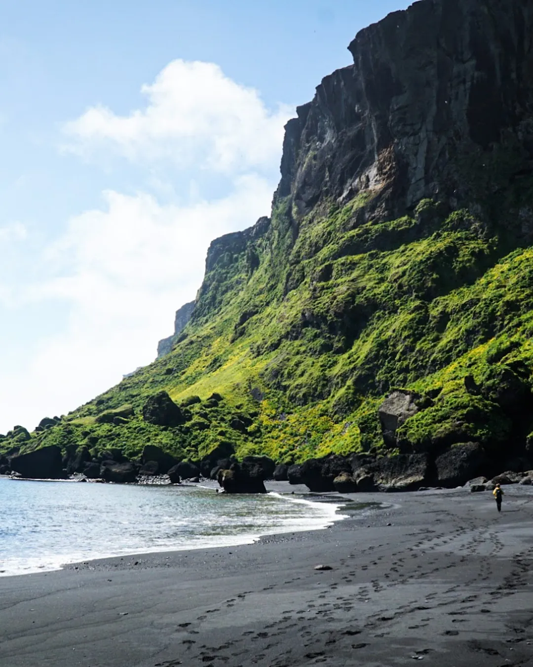Coastal village with black sand beaches