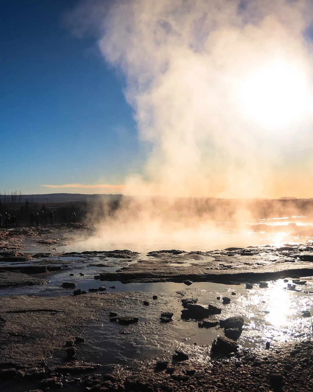 Famous geothermal field with erupting geyser