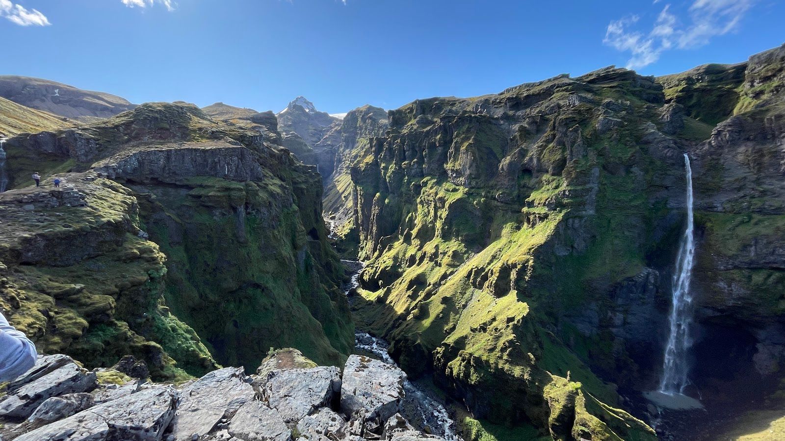 Hidden canyon with waterfalls & glacier views