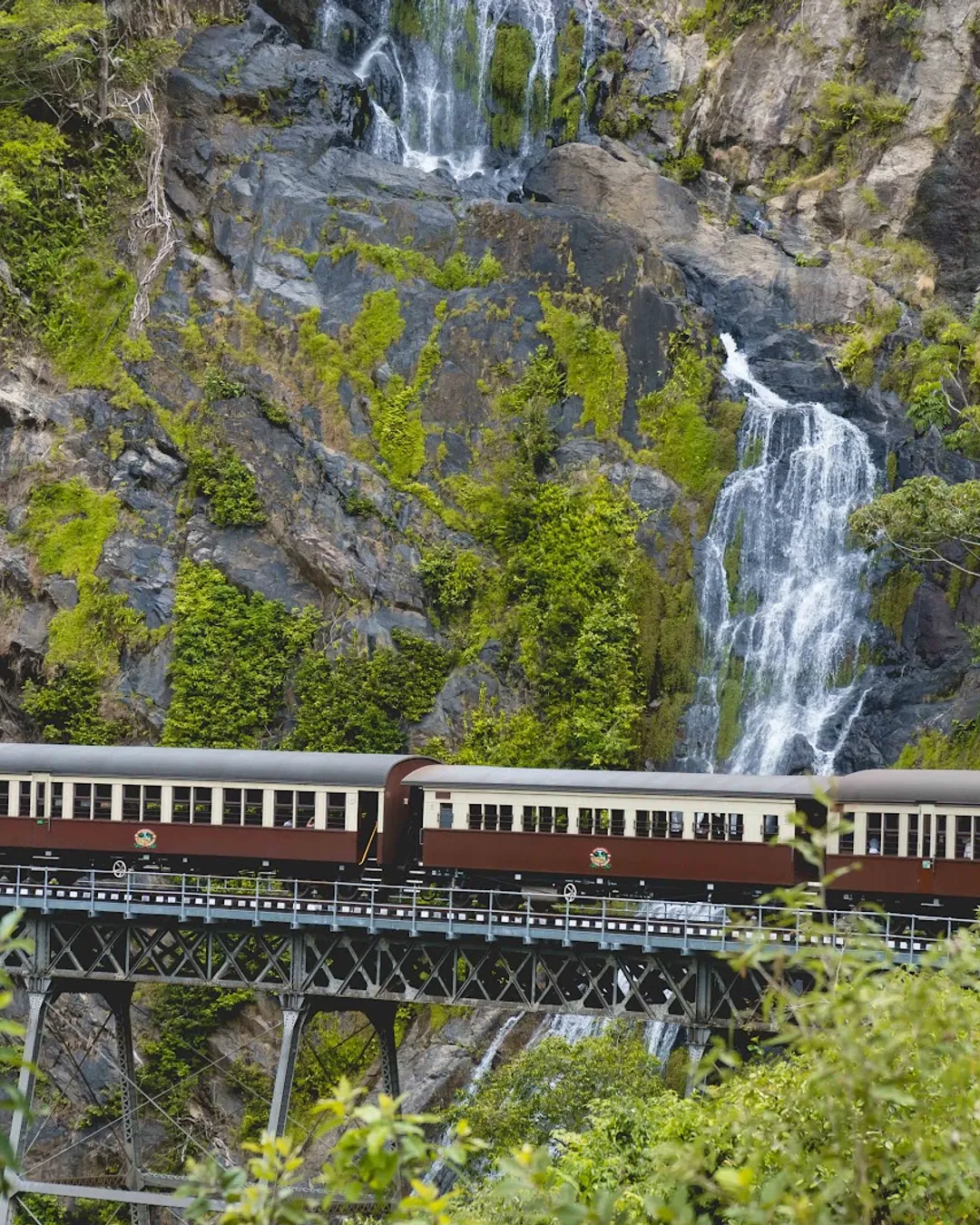 Scenic train journey through rainforest