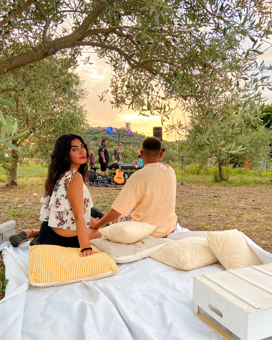 Godersi un’aperitivo tra gli ulivi al tramonto è da inserire nella famosa lista su cosa fare a Bosa. Il tempo è volato come se non ci fosse un domani. Questo perché siamo stati benissimo: abbiamo trascorso una serata emozionante al tramonto, in mezzo agli ulivi. Appena siamo arrivati ci è stato assegnato un ulivo dove sotto c’era un telo bianco da picnic, un tavolino piccolo, dei comodi cuscini e l’ autan.