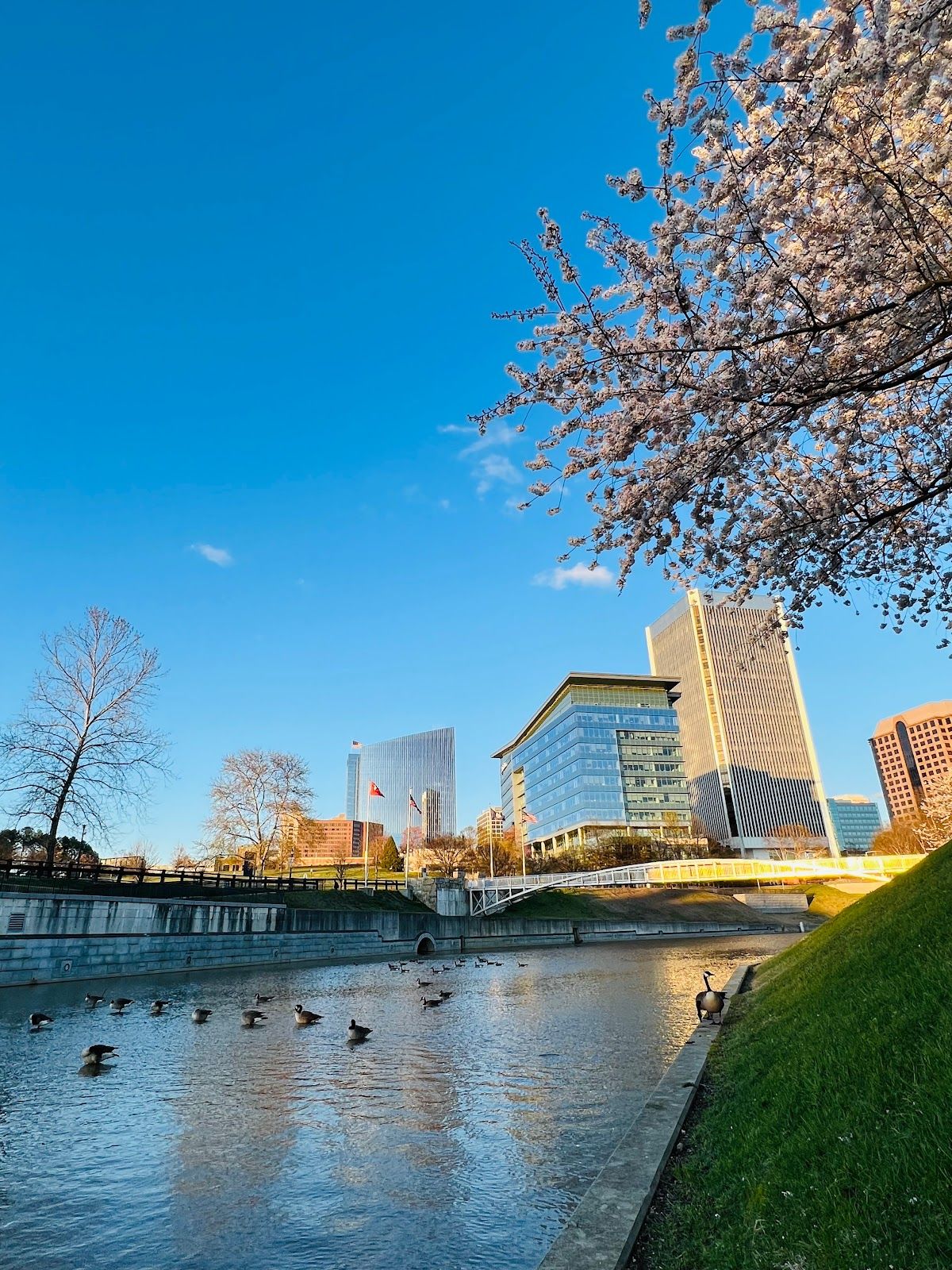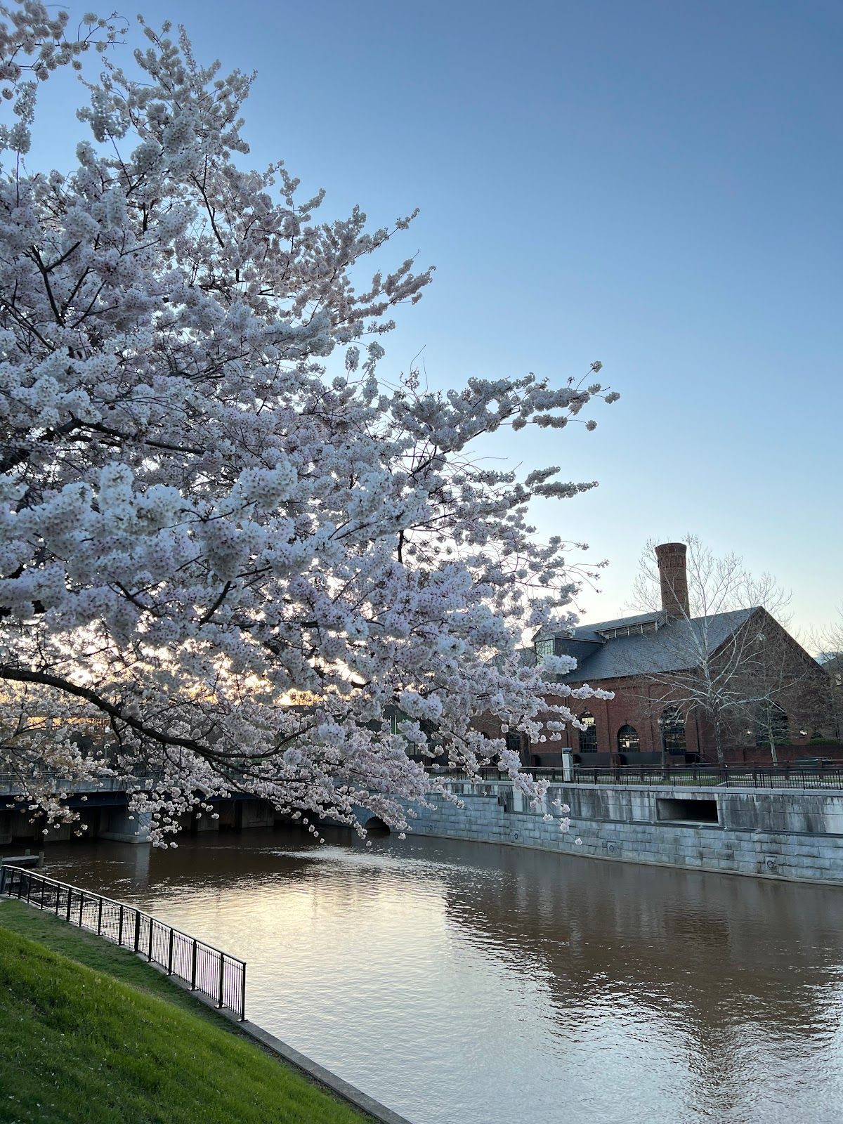 Scenic riverside park with outdoor events and trails