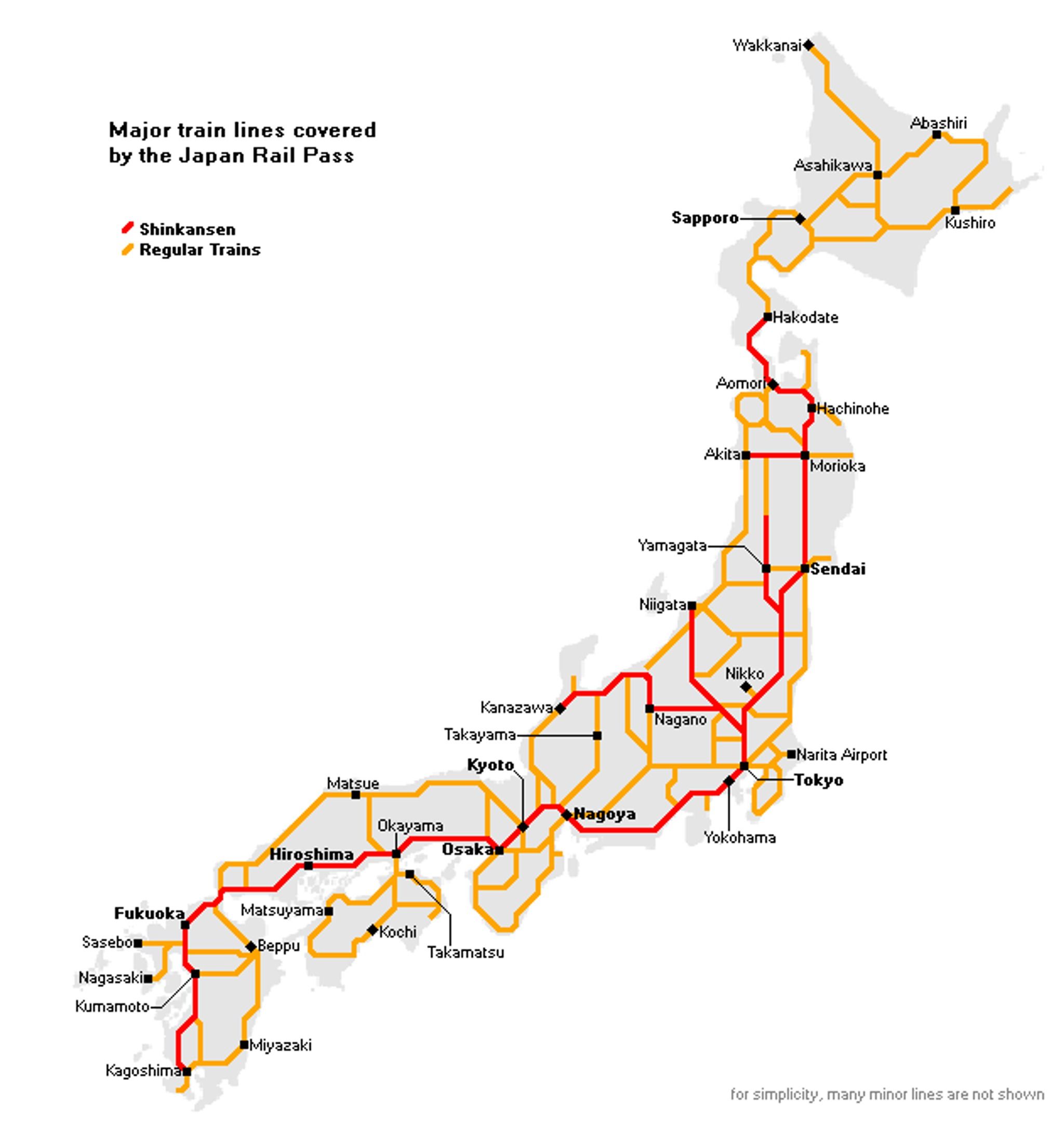 The ticket covers all non-reserved seats in ordinary cars on ordinary or rapid trains on any JR line in Japan. It EXCLUDES SHINKANSEN AND LIMITED EXPRESS TRAINS. This means travel will take more time with more connections and changing trains.