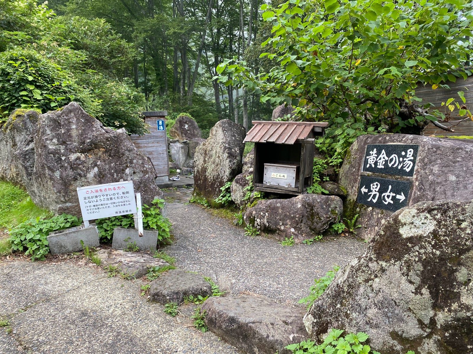 This hot spring is up in the forest - just a short walk from the parking area. It offers great views of Mount Myoko and is a great place to visit for sunset. This hot spring is one of the less common style onsen in Japan where you are in more of "wild" place as there are no real facilities beyond a changing area where you store your clothes. However, it is maintained by the local community as it draws tourists to the area to spend money. While it is free, there is a donation box that I always drop a few coins in when I visit to help pay for upkeep.