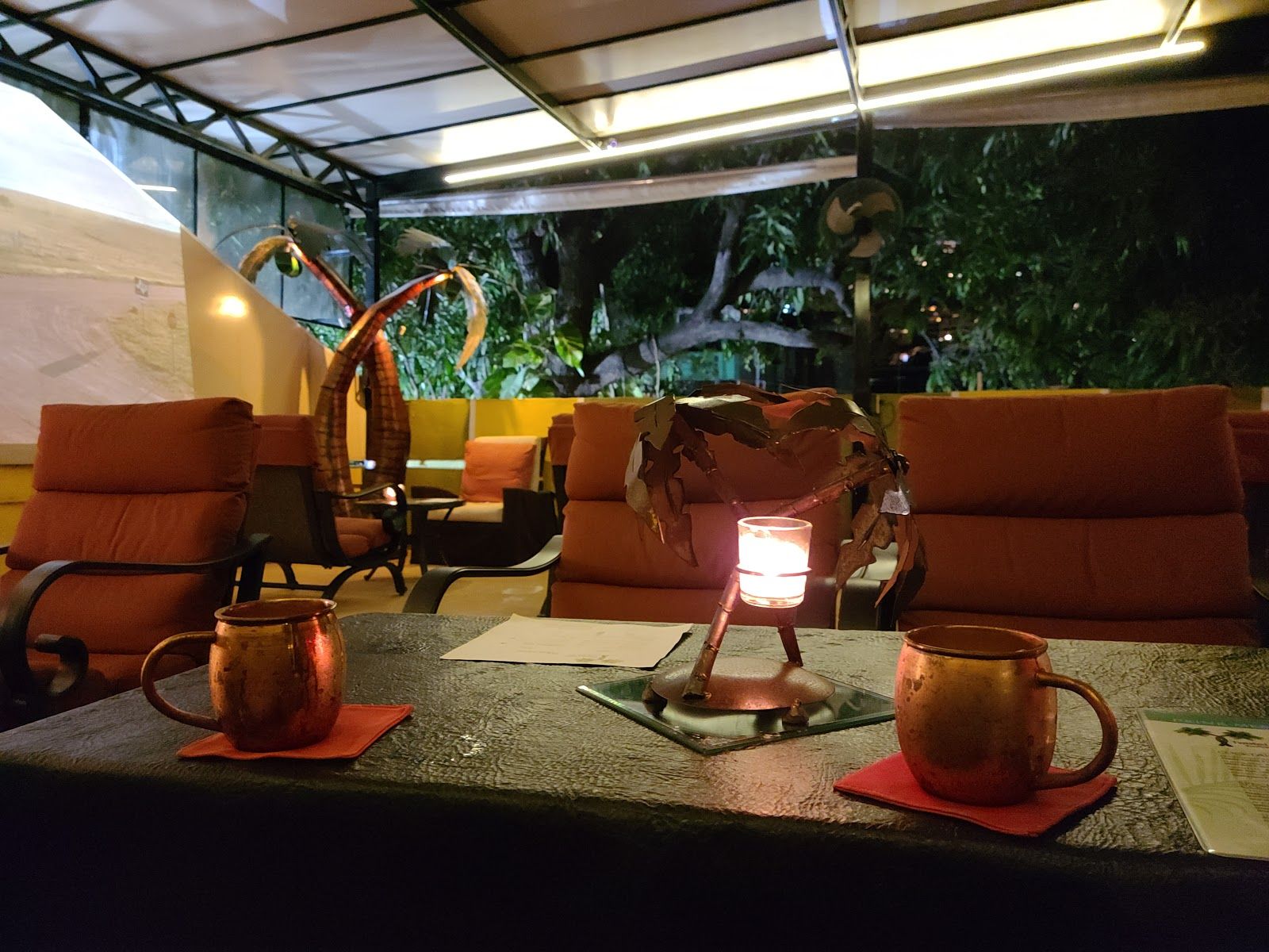 Relaxed rooftop lounge with cocktails