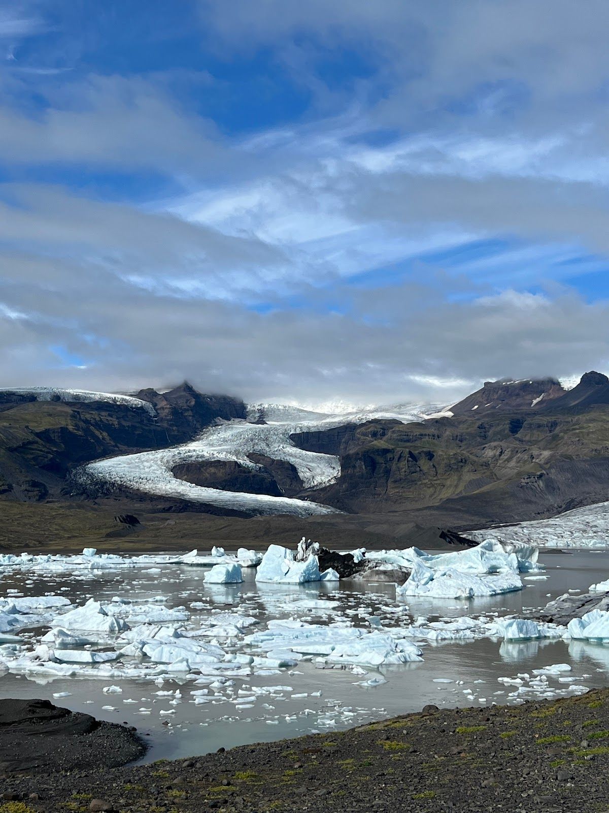 Glacial lagoon with floating icebergs