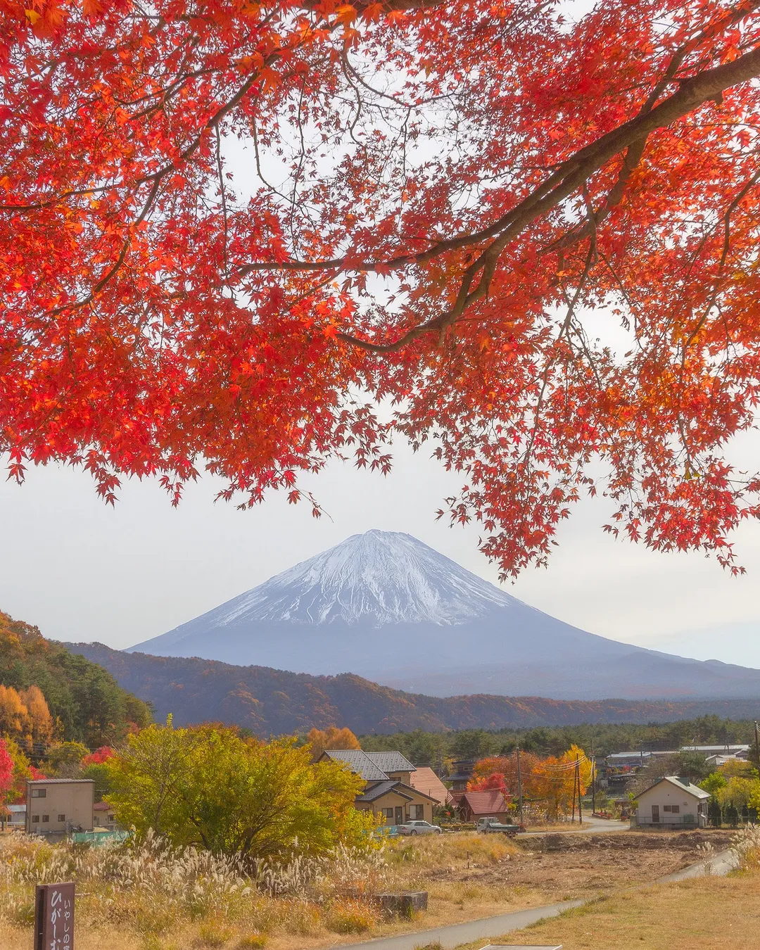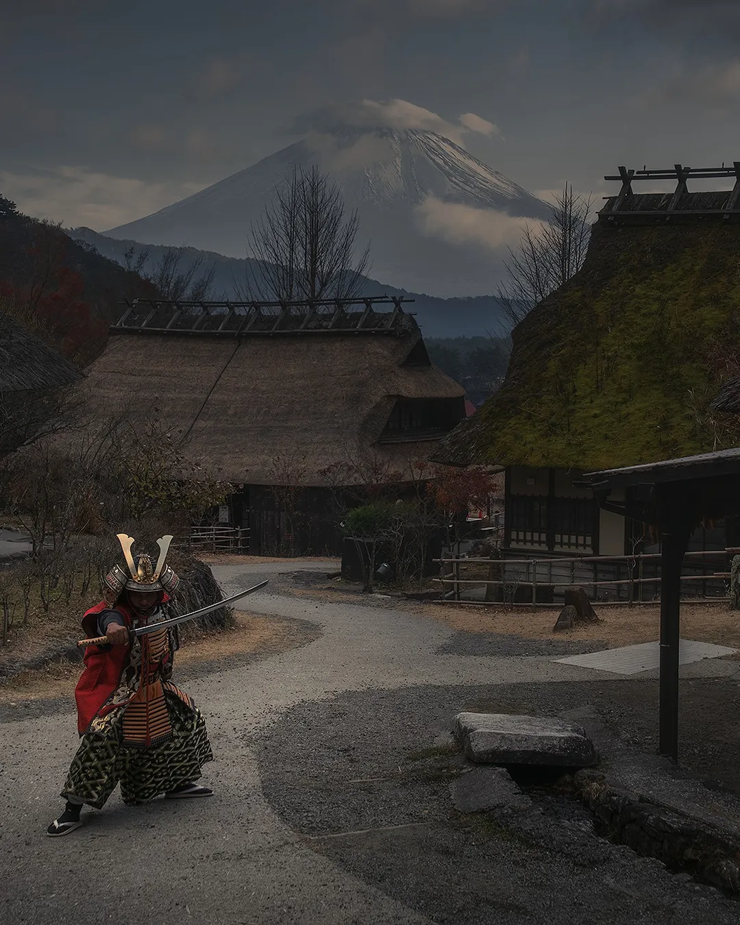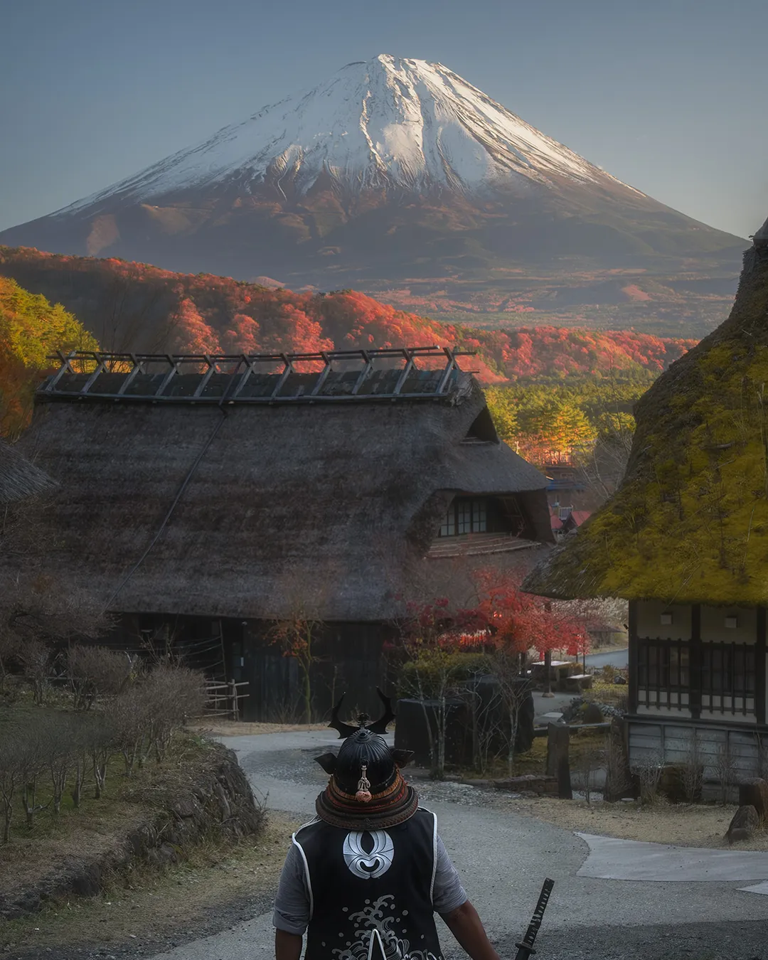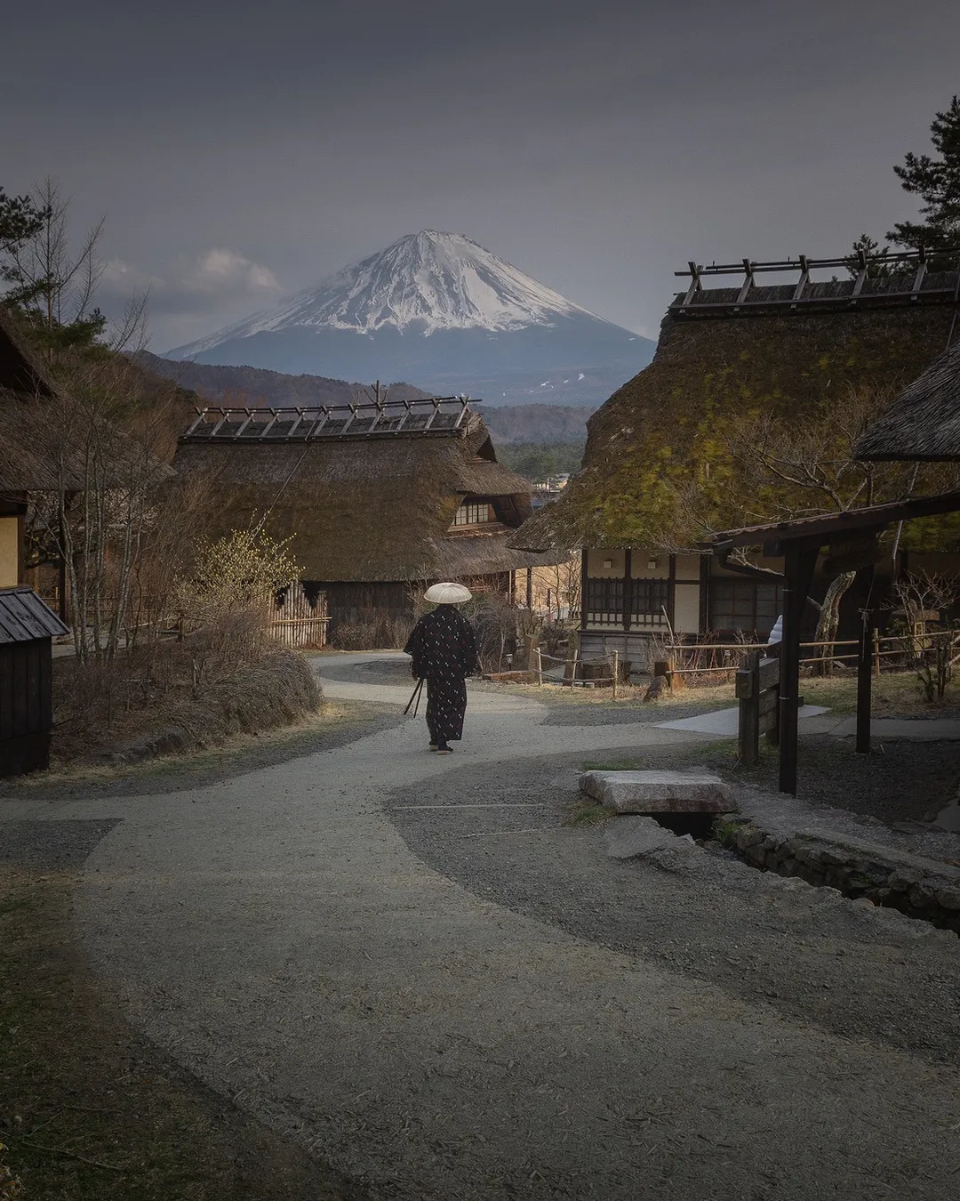 Traditional Japanese village with Mount Fuji views