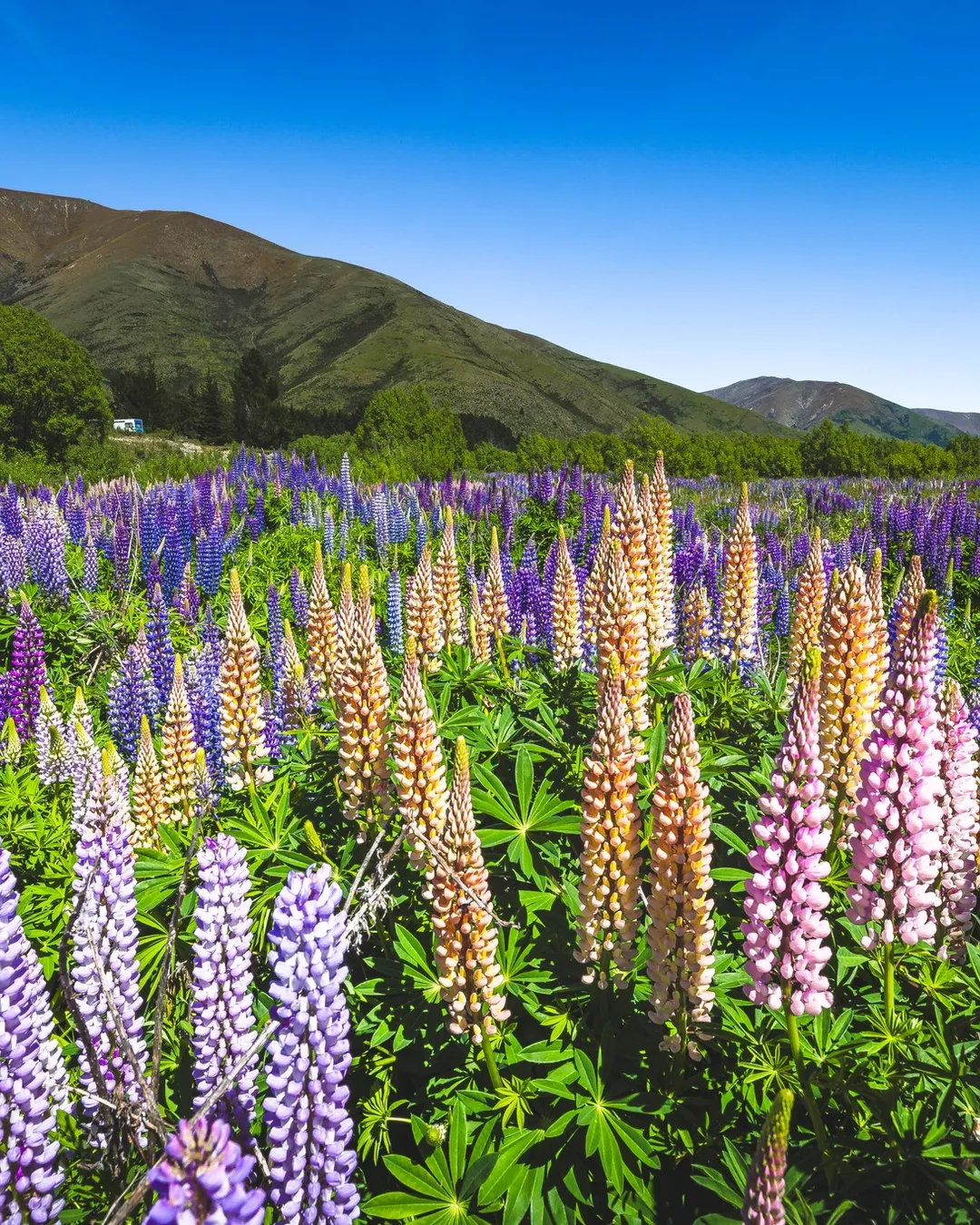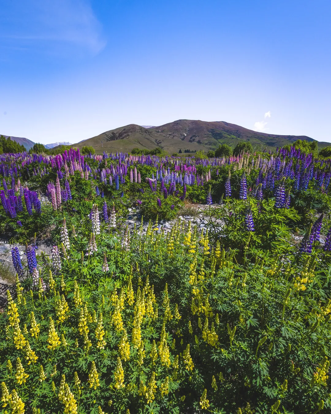 One of the best spots to see them is around the Ahuriri River in the Mackenzie region. In past years, lupins have flourished along the river’s edge and through its wide beds. The exact spread changes year to year, but you can usually spot the flowers easily from the road. There are safe pull-offs and reserves where you can park and wander down to the river foreshore.