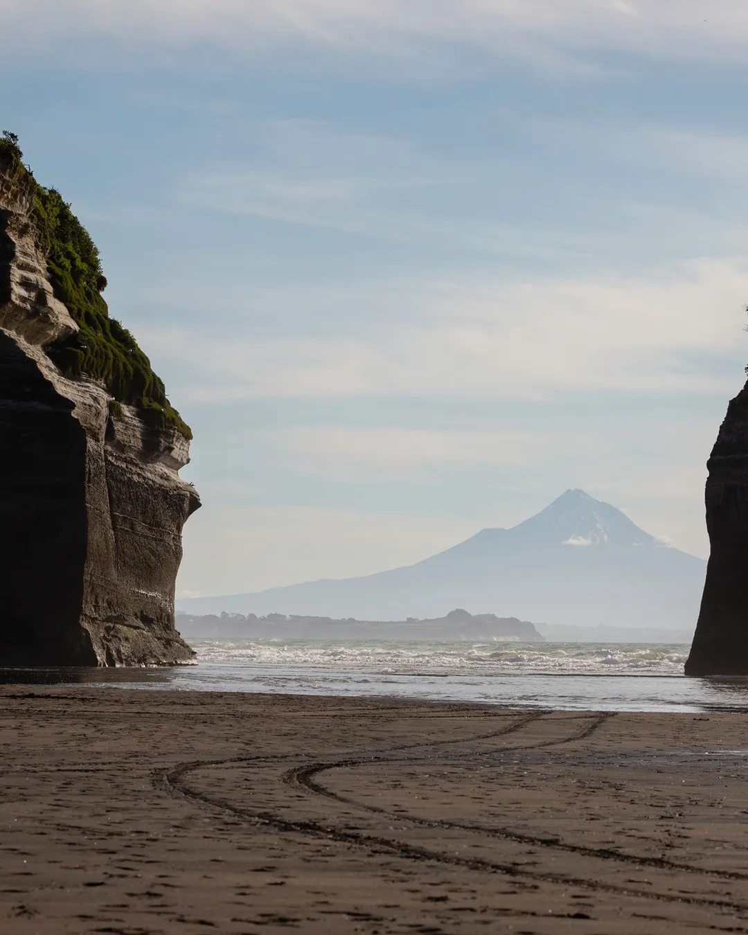 You can only reach the stacks at mid to low tide, so be sure to check the tide charts before heading out. The walk from Tongaporutu Domain takes about 10 minutes across the inlet, and although you might get your feet wet or muddy, the payoff is huge. On clear days, Mount Taranaki rises in the distance behind the formations, and at sunset the entire beach glows in golden light.
