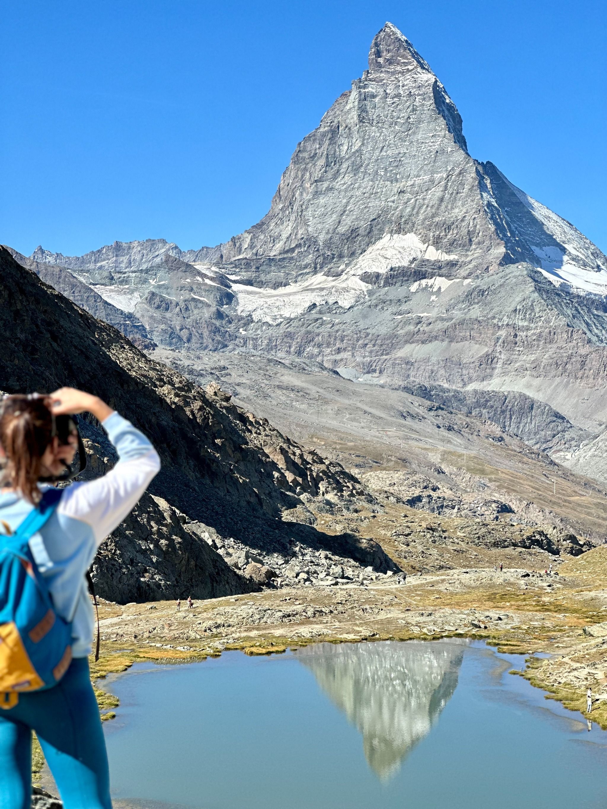 Practical tips: To maximize the mirror effect, aim for a windless time – typically dawn or very late afternoon. Mornings also have fewer hikers, so your reflection pictures won’t be disturbed by ripples. If you go for sunrise, take the first train up (or even hike up in early morning darkness if you’re keen; otherwise, sunrise from the train is gorgeous too). Bring water and sun protection; there’s no shade and the UV is strong at altitude. Also note that at Rotenboden there is no shop – carry snacks if needed. The hike to Riffelberg is worth it if you have time, as you might spot marmots and alpine flowers along the way (plus you can stop at Riffelberg’s restaurant). Keep kids close near the lake – the terrain is easy, but we want to preserve the tranquility of this special spot.