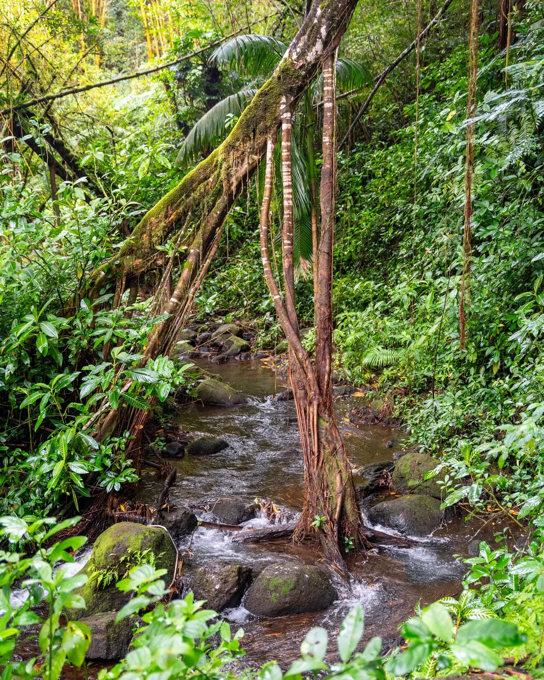 The short, paved loop trail through the park winds past bamboo groves, wild orchids, and another smaller cascade—Kahūnā Falls—making it a favorite stop for both locals and visitors.
