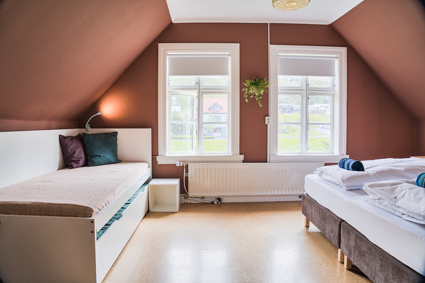 Hafaldan old Hospital is located in the town's centre in the historic former hospital building. The building has been under constant renovation for the last years and is without a doubt one of Iceland's most charming hostels with a beautiful interior design. The newest pride is the little basements "SPA" where guests can enjoy a Sauna & relax after a busy sightseeing day. The hostel offers a variety of different rooms both with private and shared bathroom.