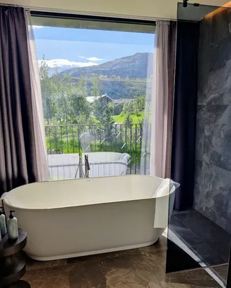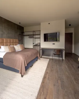 Hotel Geysir provides accommodation as well as a beautiful restaurant and bar immersed in a cozy and warm atmoshpere Our hotel provides a 24-hour front desk and room service, along with free WiFi. Guests can enjoy mountain or valley views bathed in the serene Icelandic tone. In addition we provide Northern Lights wake up call for guests eager to see this natural wonder.