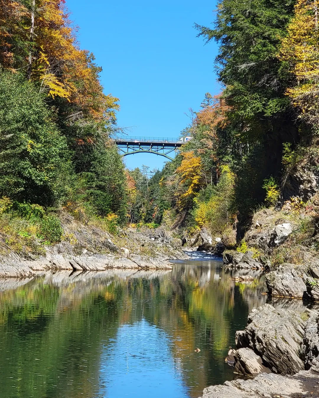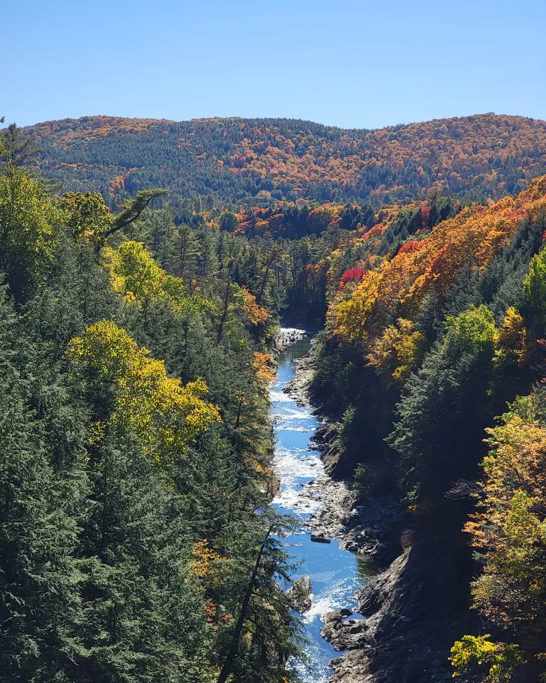 Visitors flock to the area for its breathtaking views, especially from the scenic overlook that provides a perfect vantage point to take in the beauty of the gorge. Hiking trails wind through the surrounding woods, offering opportunities for exploration and adventure. In the fall, the foliage really pops off, making it a popular spot for leaf-peepers.