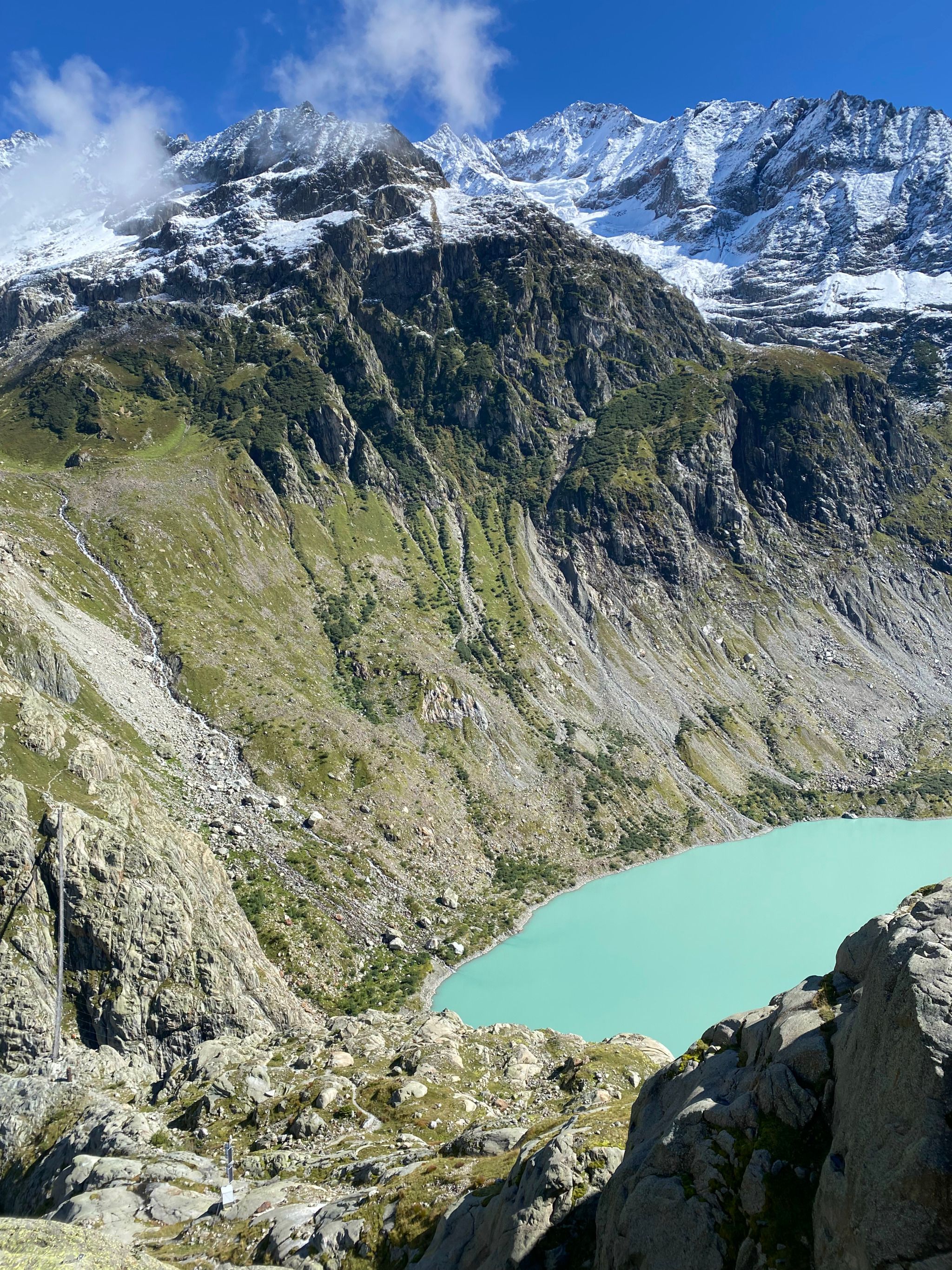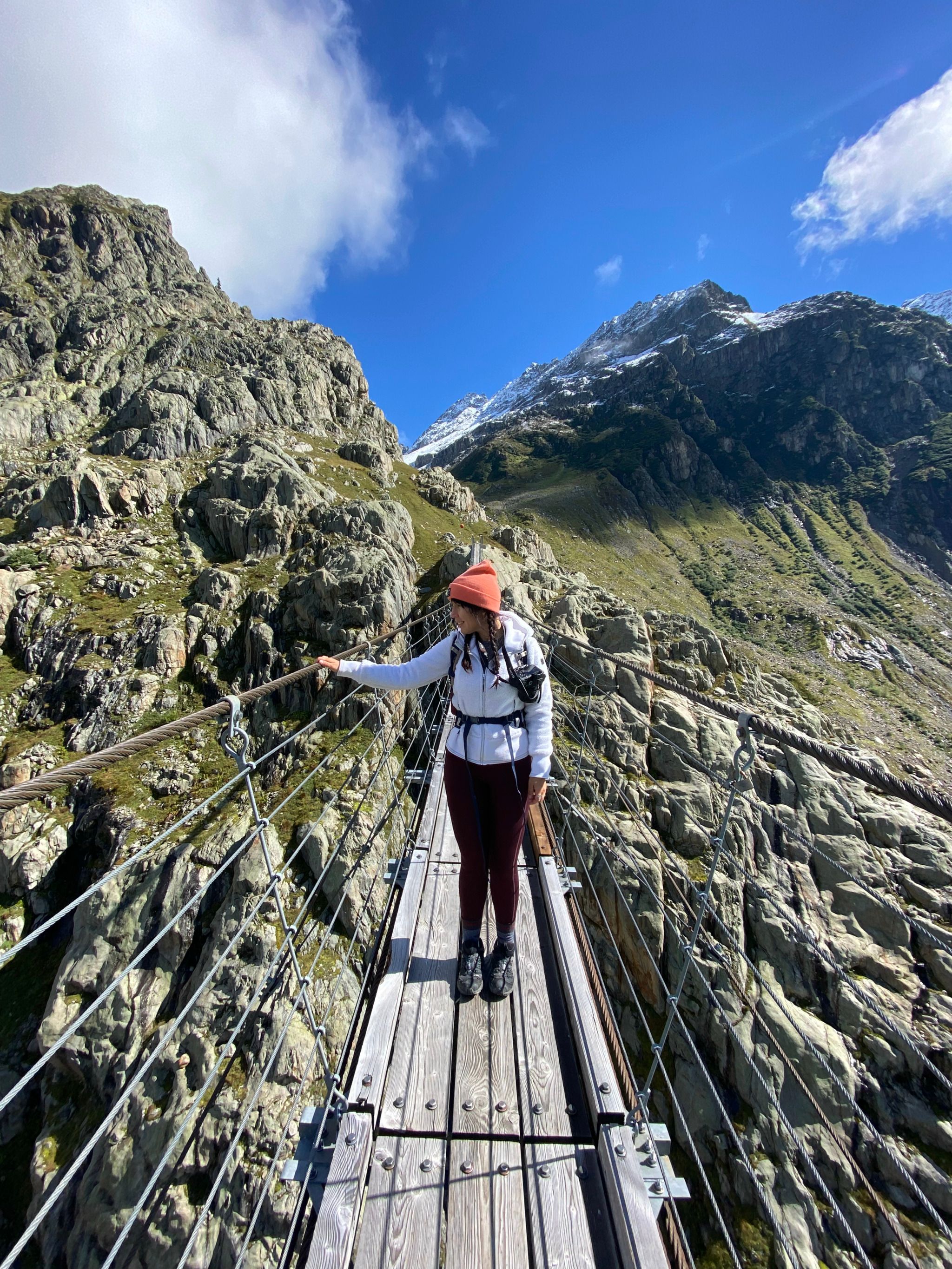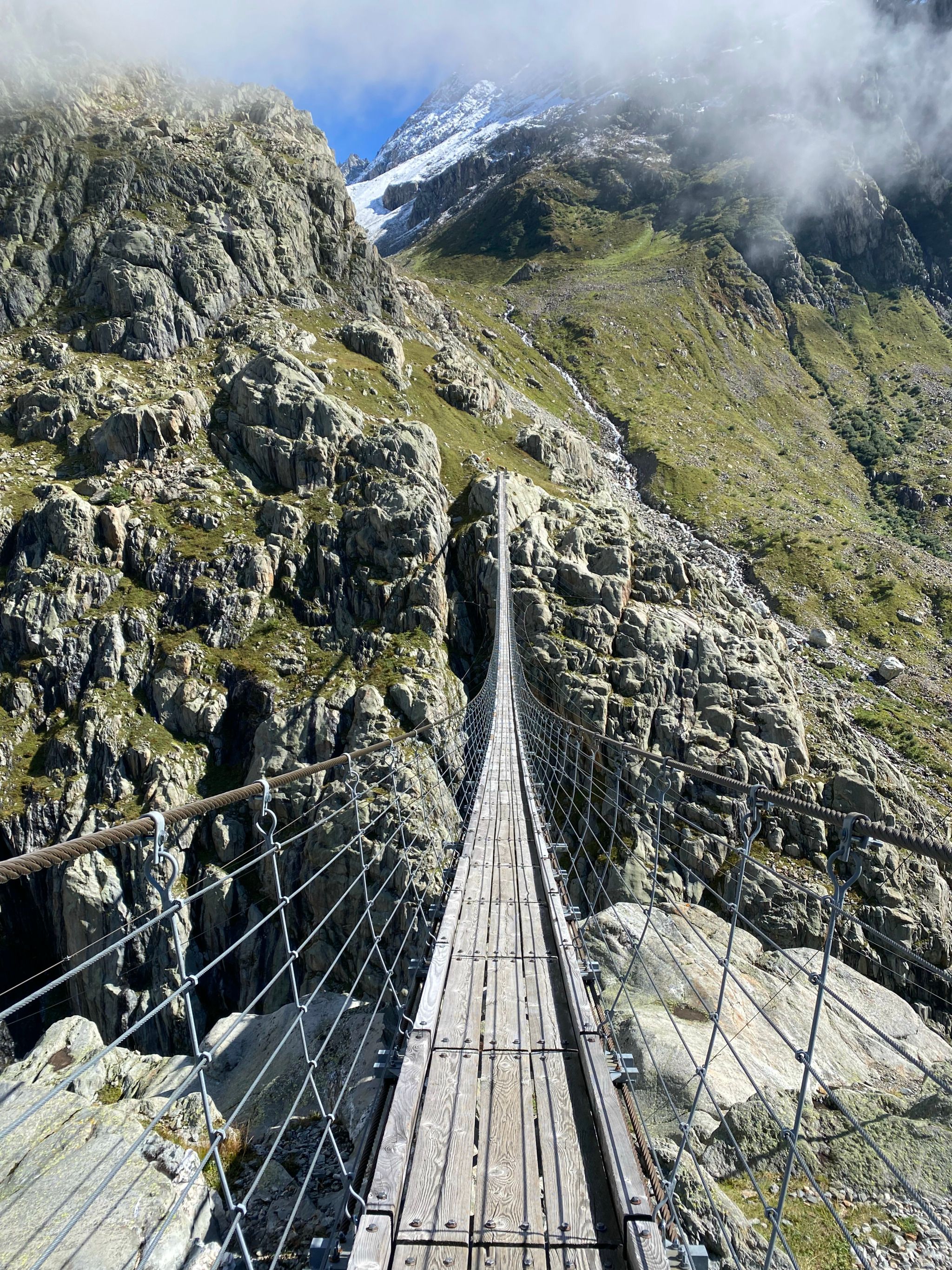 Fun Fact: The Trift bridge was built in 2004 as the glacier was no longer big high enough to access the Trift hut (that remains close in 2024 and 2025) The Rift bridge was modelled after Nepalese high wire bridges. In 2009 they replaced the bridge with a safer version, which considered is one of the highest and longest suspension bridge in the alps.
