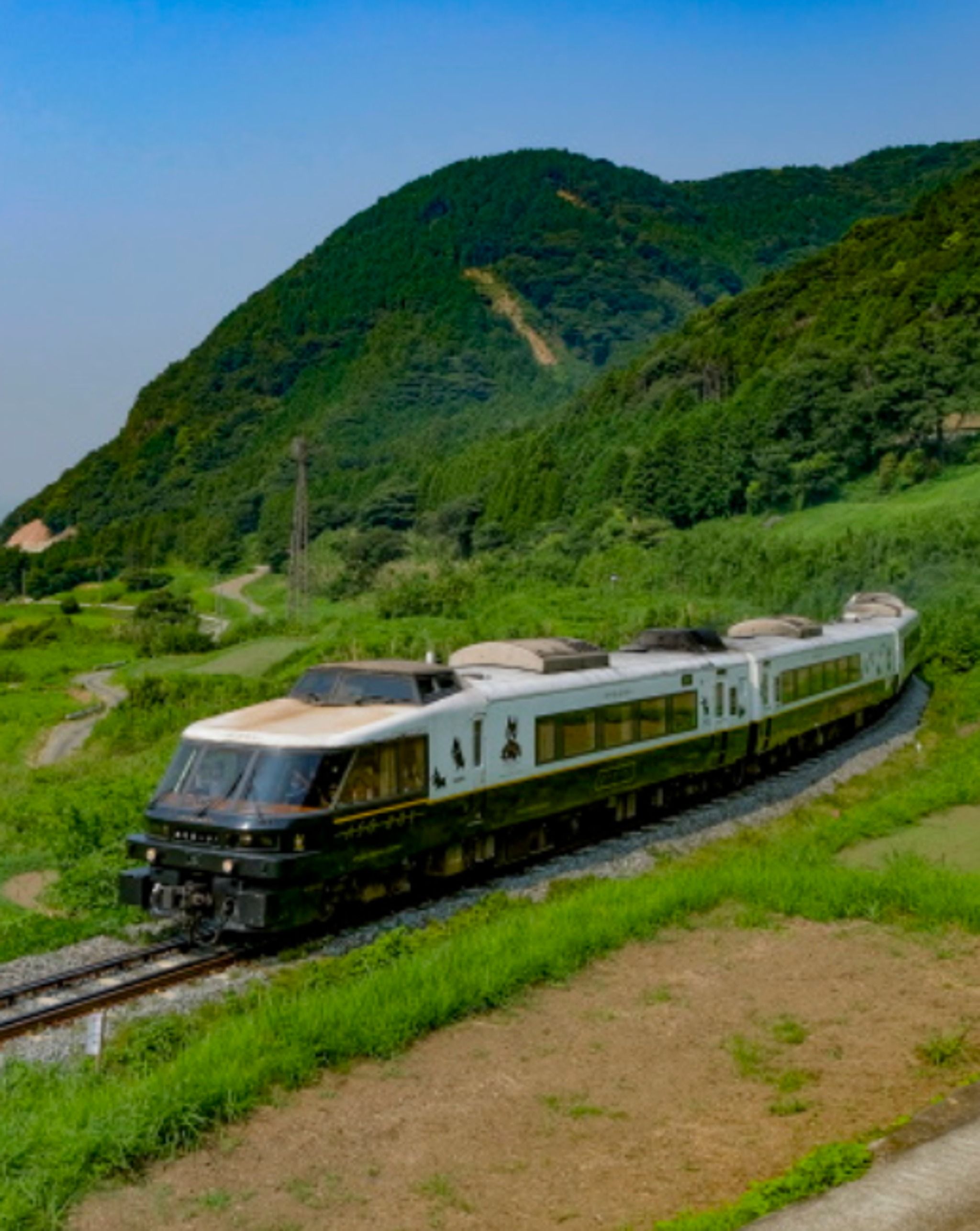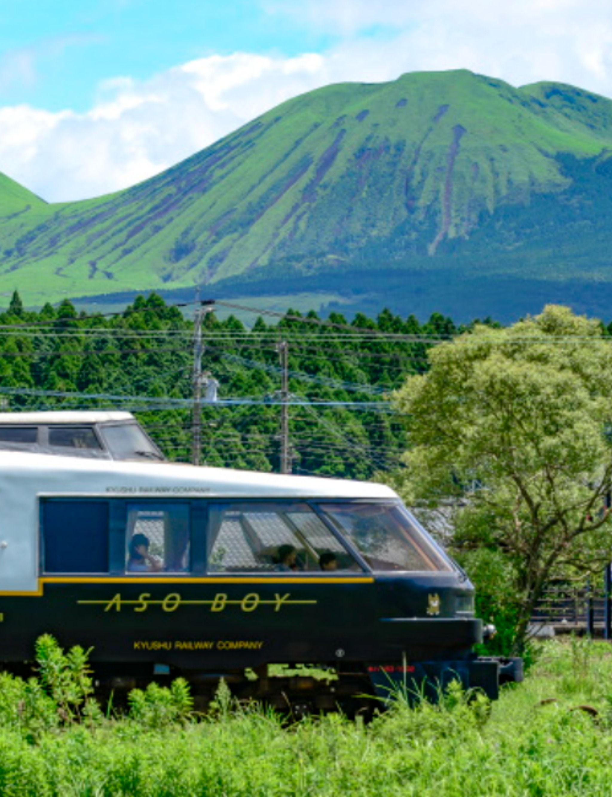 Family-friendly scenic train between Kumamoto and Aso.