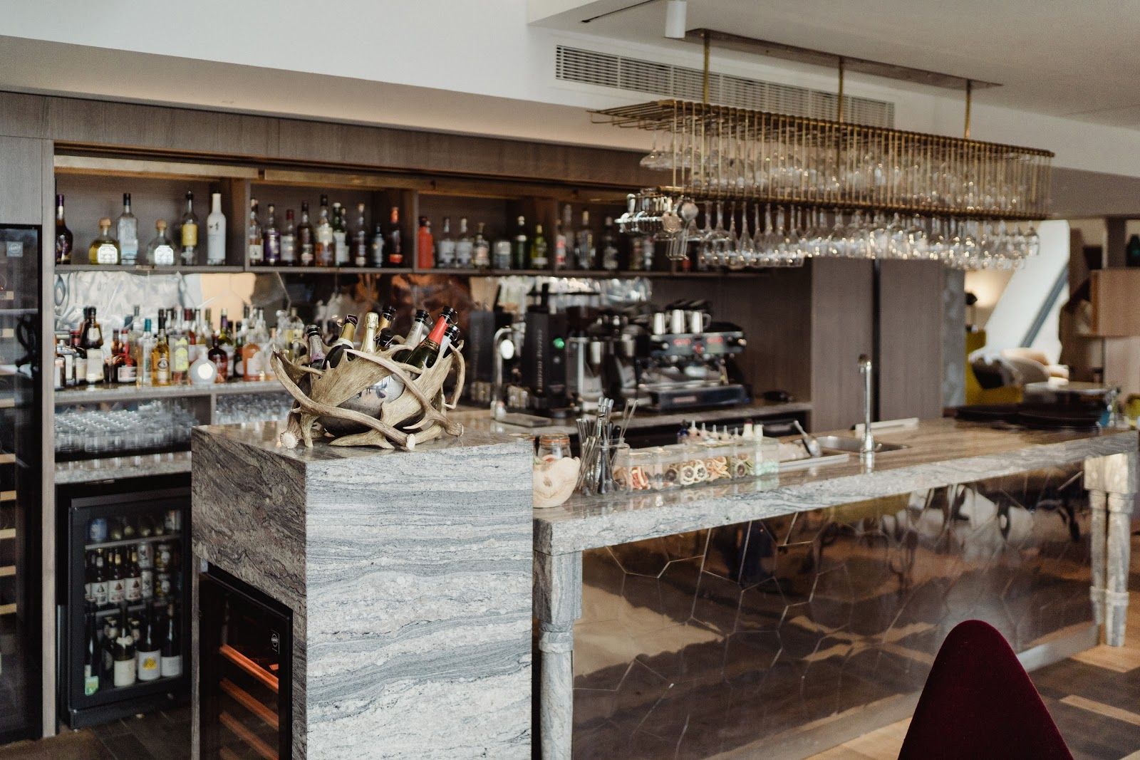 Champagne lounge with city views