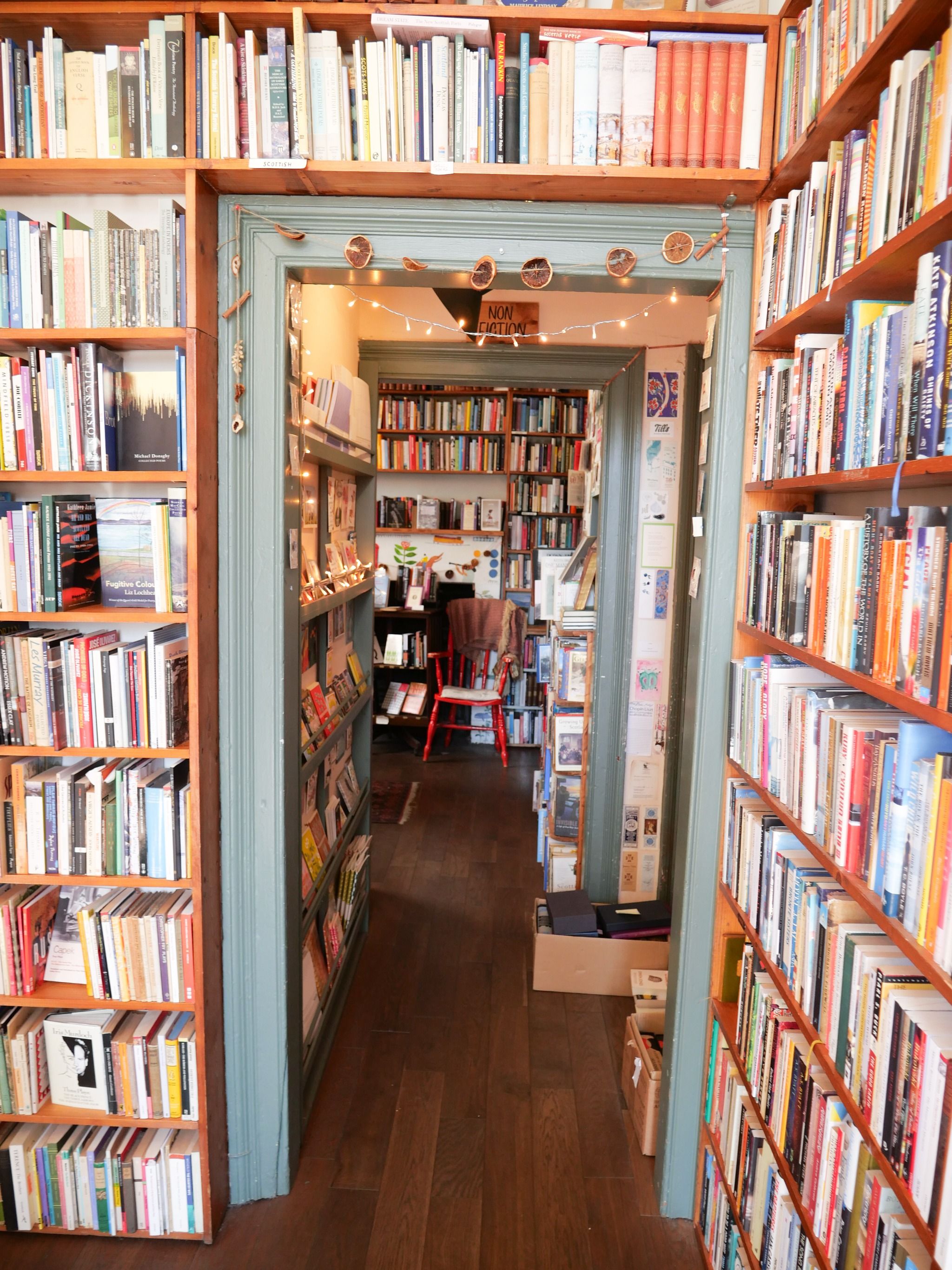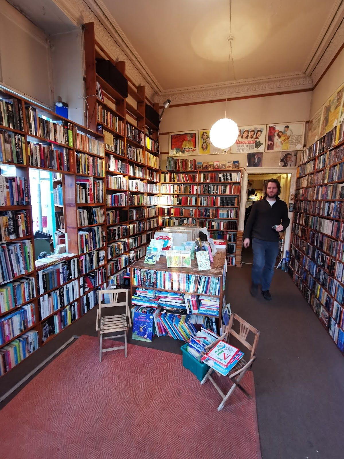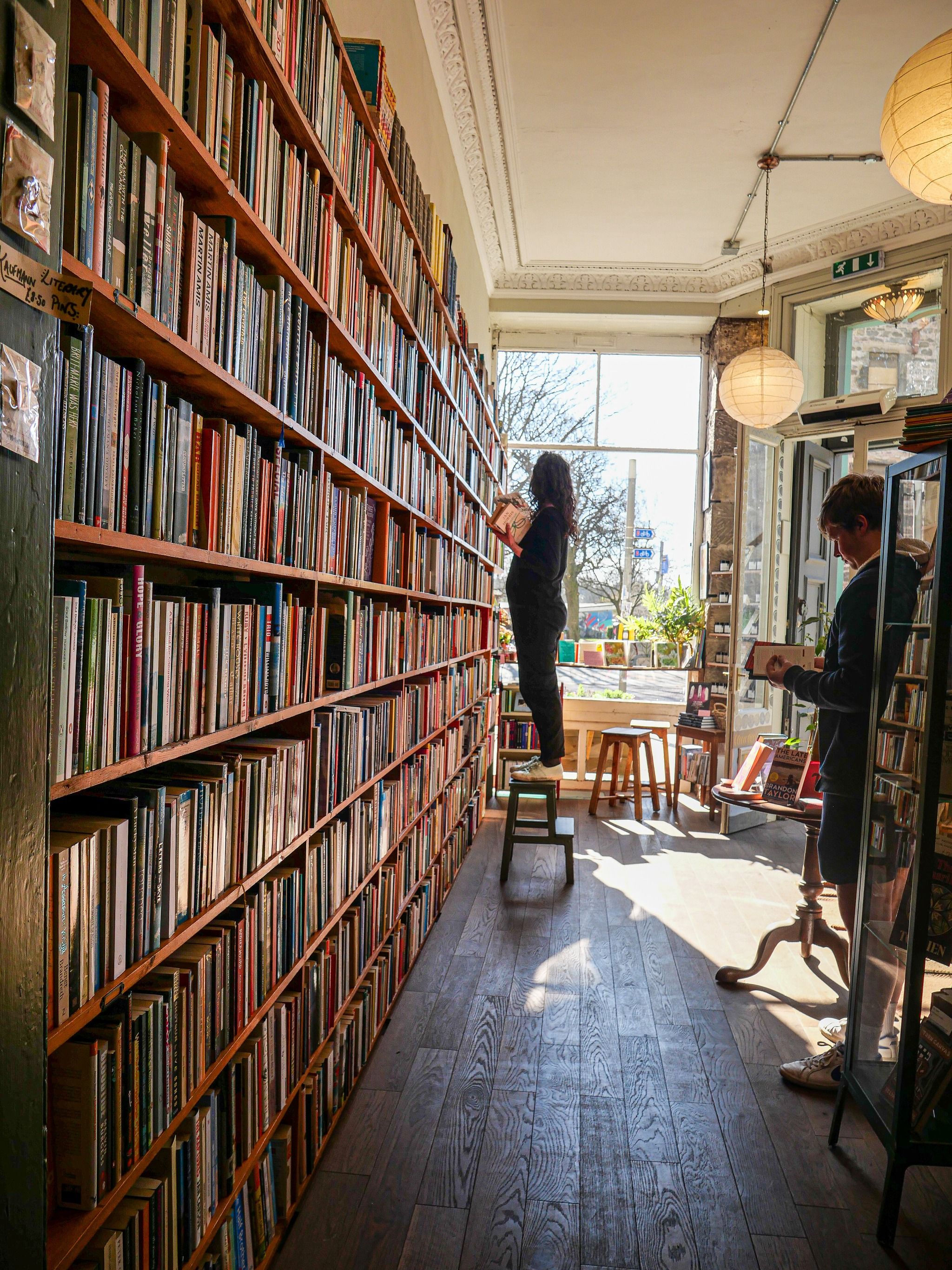 Cozy bookstore with rare finds