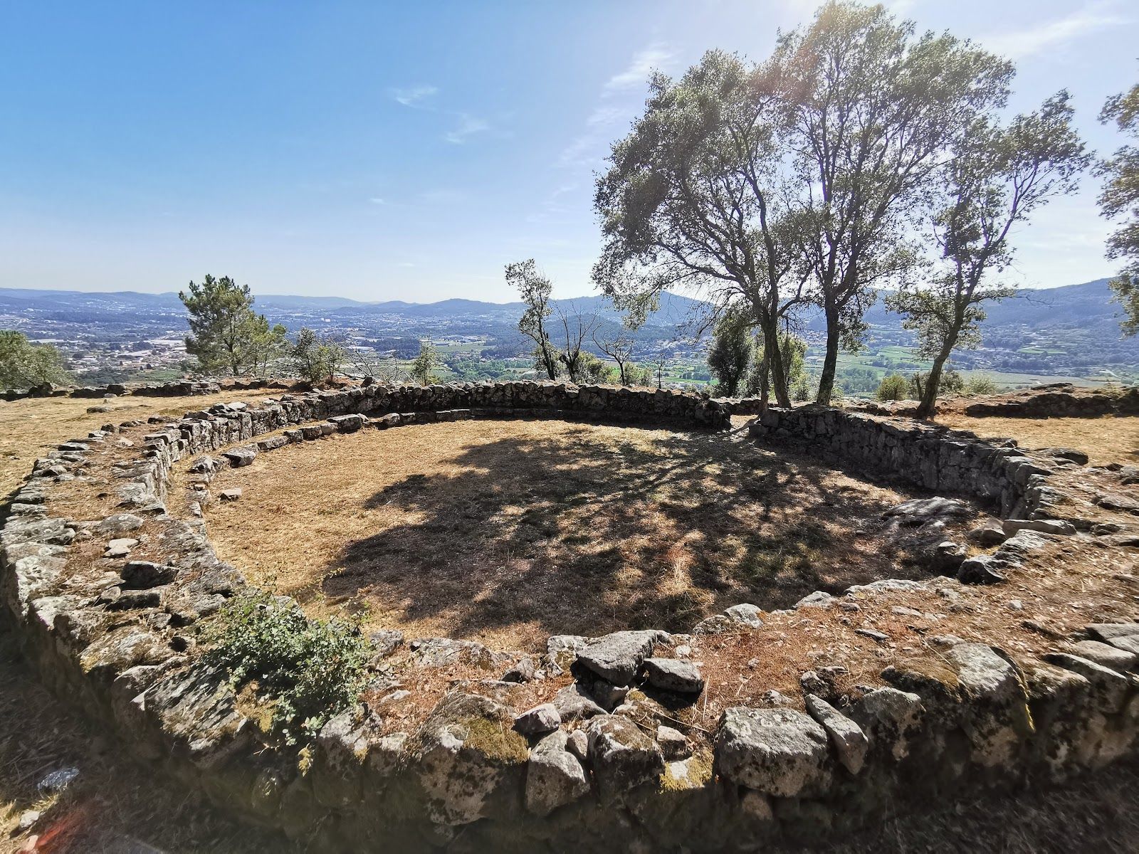 The initial use of Monte de São Romão dates to the Final Neolithic and Chalcolithic, when rock art panels were carved into the granite outcrops of the hillside. As a settlement, occupation dates from the early 1st millennium BC, in the Atlantic Bronze Age. The citânia's golden period runs from the 2nd and 1st centuries BC through the turn of the era. (Wikipedia) With 20 hectares, four lines of walls, and an urban layout including streets, residential blocks, fountains, and bathhouses, calling it a city is not an overstatement.