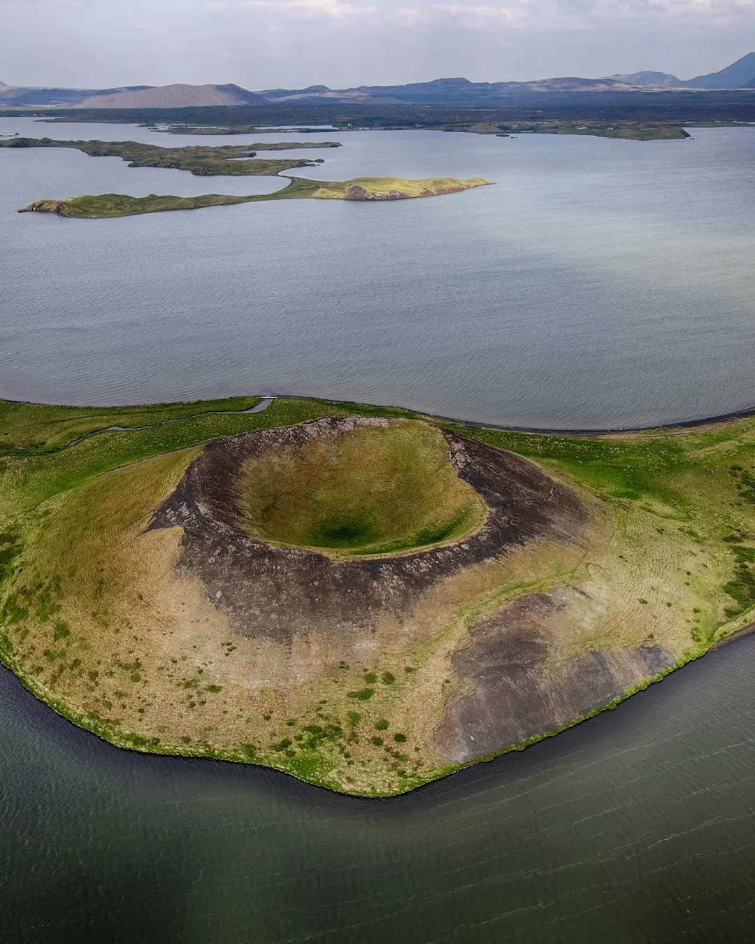 Pseudokrátery na jazere Mývatn