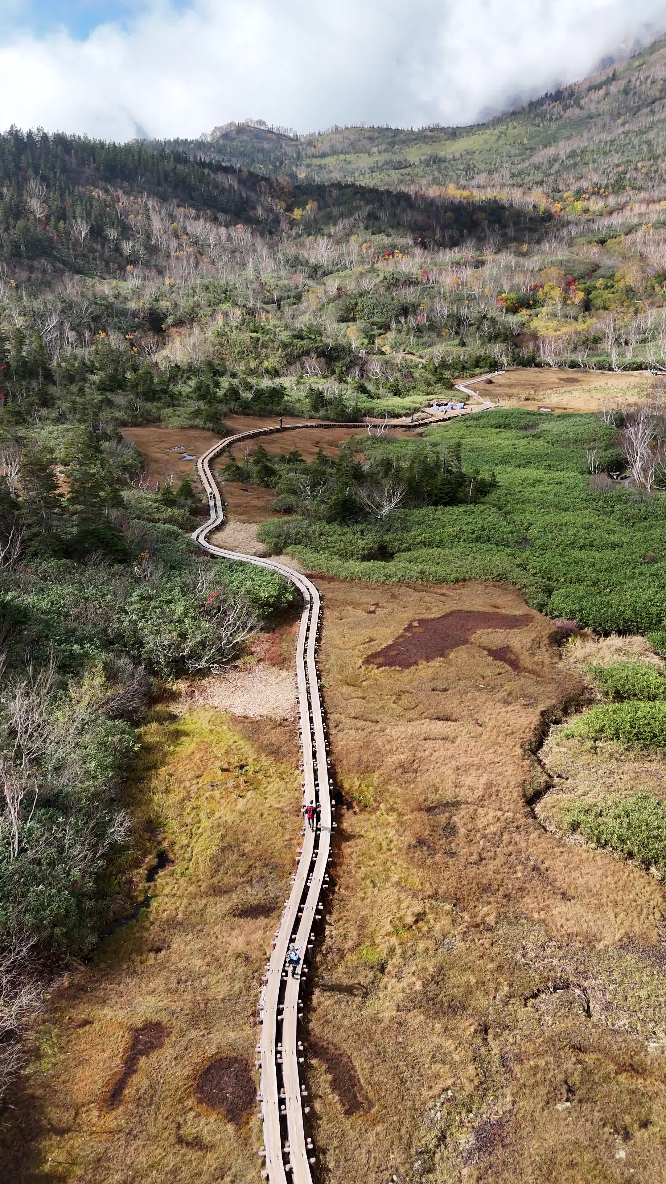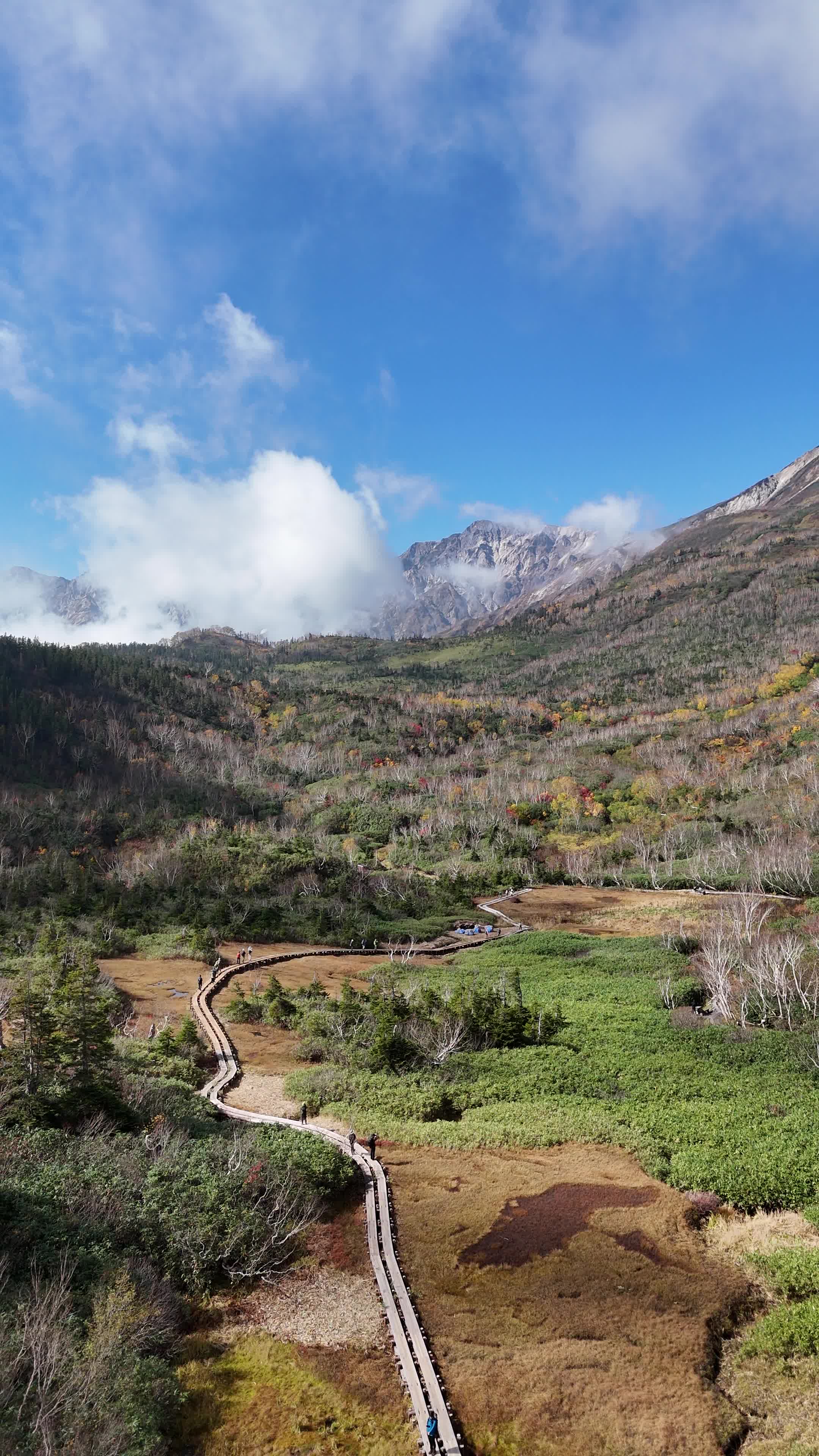 Tsugaike Nature Park, located in the Northern Japanese Alps at 1,900 meters, is a stunning high-altitude wetland accessible via the Tsugaike Ropeway, which offers breathtaking mountain views. The park features well-maintained boardwalk trails, including a 5.5-kilometer loop that takes 2-3 hours to complete, showcasing marshlands, alpine meadows, and vibrant summer flowers. Suitable for all hiking levels, the park also serves as a starting point for challenging treks to peaks like Mount Shiroumadake, making it a serene yet versatile destination for nature lovers.