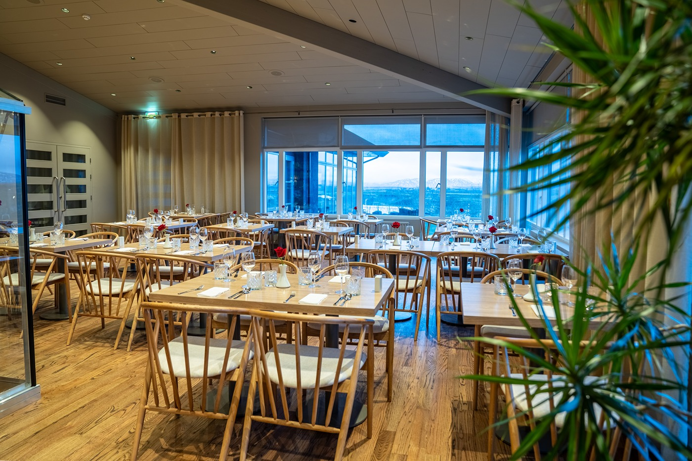 The restaurant at the Hill, uses only locally sourced, organic produce and meats and relaxing bar are the perfect places to spend your evenings. While feasting your eyes on expansive views of Iceland's unspoiled countryside let our friendly staff attend to your every need. Within minutes, you can be soaking in a hot tub staring up at the Northern lights in our beautiful hotel garden before resting after a day filled with activities.