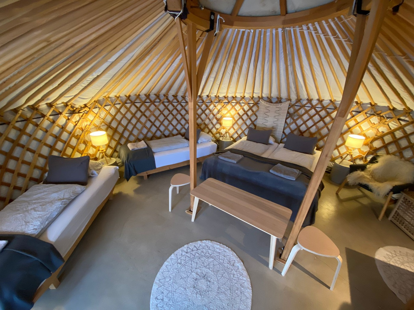 Welcome to náttúra yurtel. Handcrafted in Mongolia, our 4000 year-old-design yurts - adapted for the comfort of modern day adventurers - are all furnished with wash basin and toilet. Our intimate site has seven heated bedroom yurts, one larger breakfast yurt and a separate shower/toilet block.